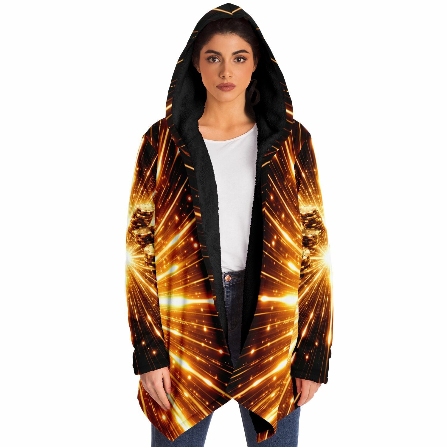 This luxurious cloak is made from an ultra-soft premium microfiber fleece lining. The outside is made with a micro-mink polyester fabric that allows the print to be high definition with vibrant colors. Featuring two deep side pockets to keep your belongings safe and your hands warm.