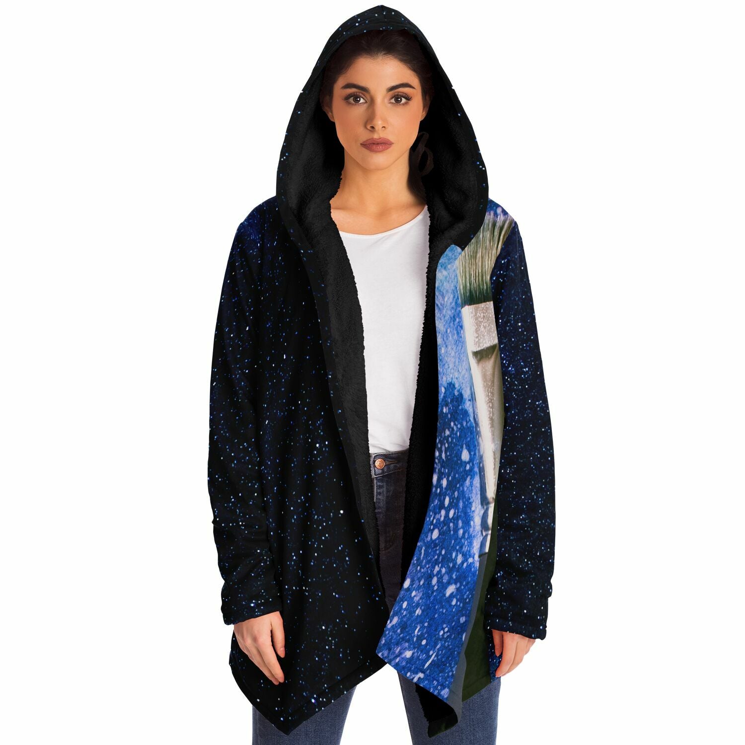 This luxurious cloak is made from an ultra-soft premium microfiber fleece lining. The outside is made with a micro-mink polyester fabric that allows the print to be high definition with vibrant colors. Featuring two deep side pockets to keep your belongings safe and your hands warm.