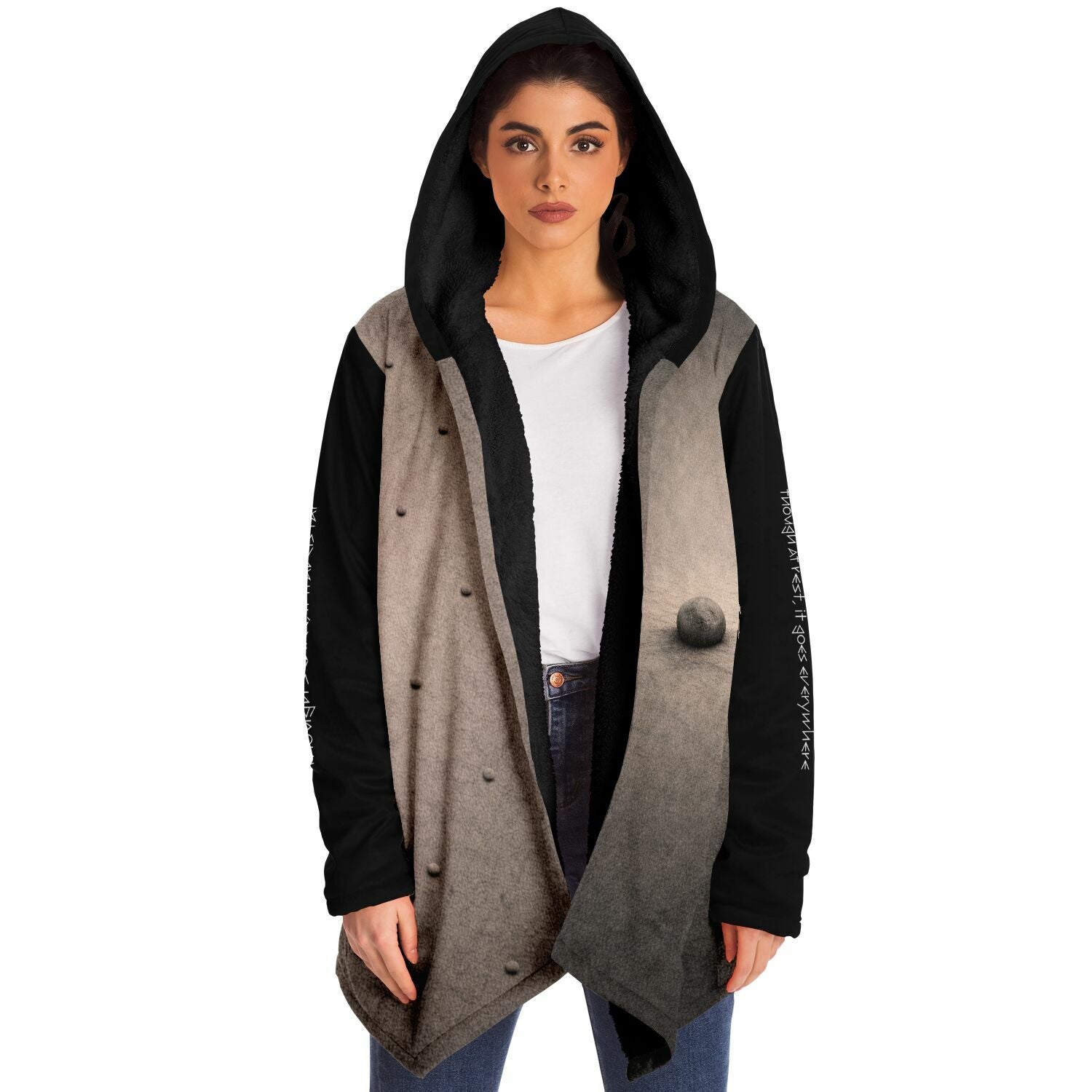 This luxurious cloak is made from an ultra-soft premium microfiber fleece lining. The outside is made with a micro-mink polyester fabric that allows the print to be high definition with vibrant colors. Featuring two deep side pockets to keep your belongings safe and your hands warm.