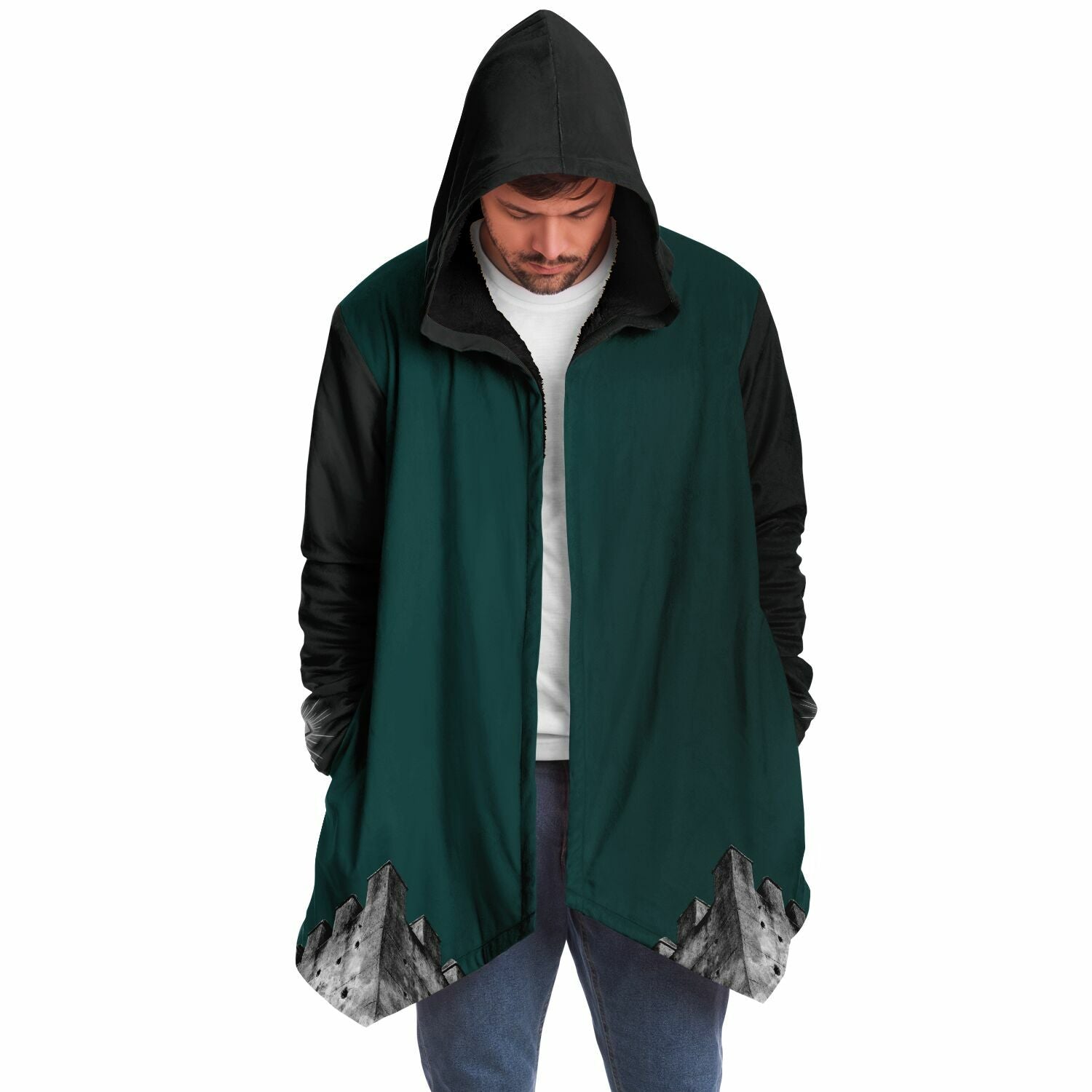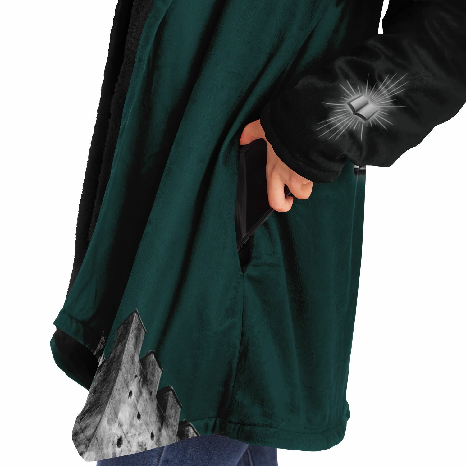 This luxurious cloak is made from an ultra-soft premium microfiber fleece lining. The outside is made with a micro-mink polyester fabric that allows the print to be high definition with vibrant colors. Featuring two deep side pockets to keep your belongings safe and your hands warm.