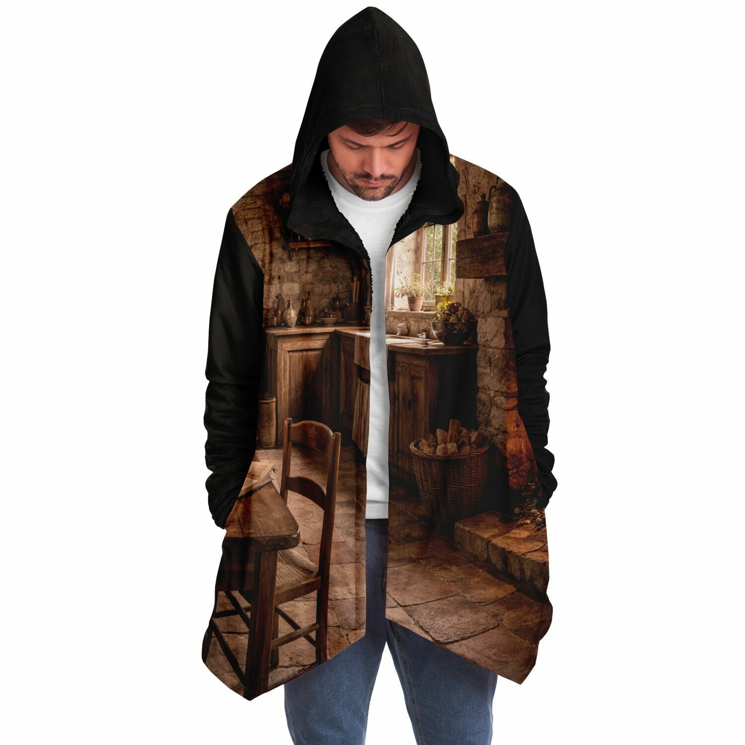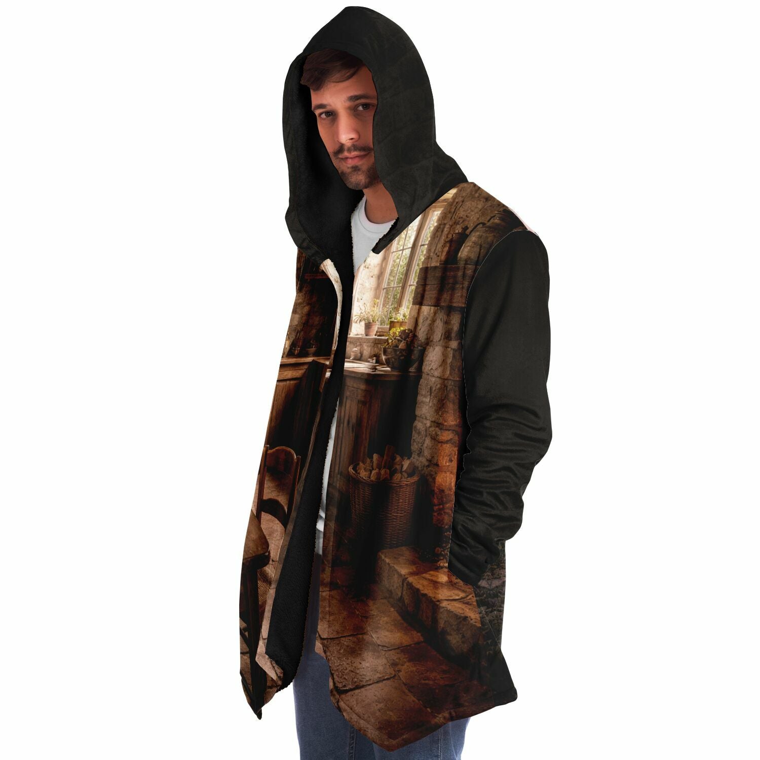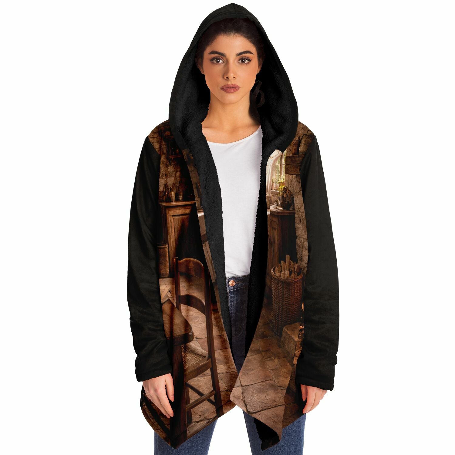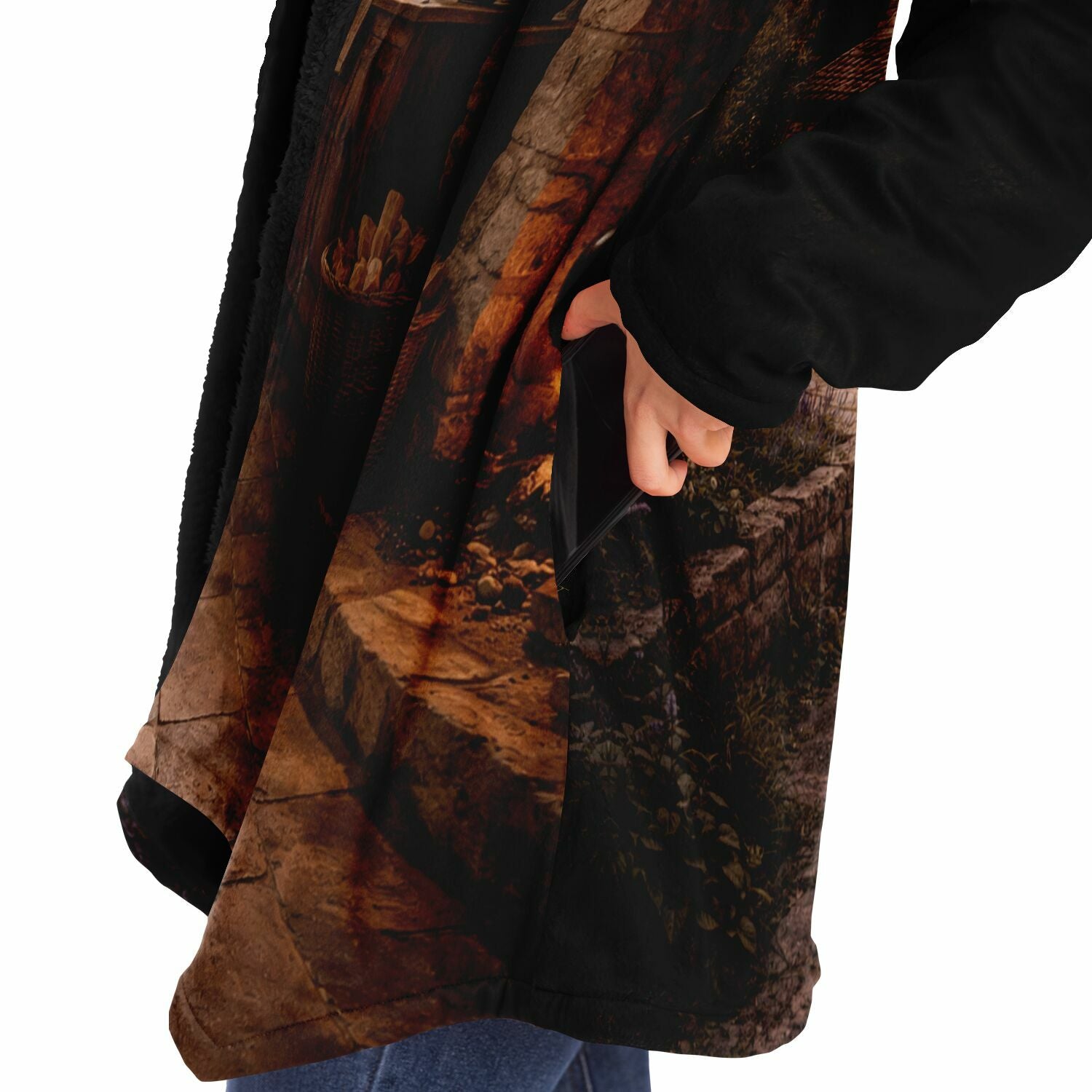 This luxurious cloak is made from an ultra-soft premium microfiber fleece lining. The outside is made with a micro-mink polyester fabric that allows the print to be high definition with vibrant colors. Featuring two deep side pockets to keep your belongings safe and your hands warm.