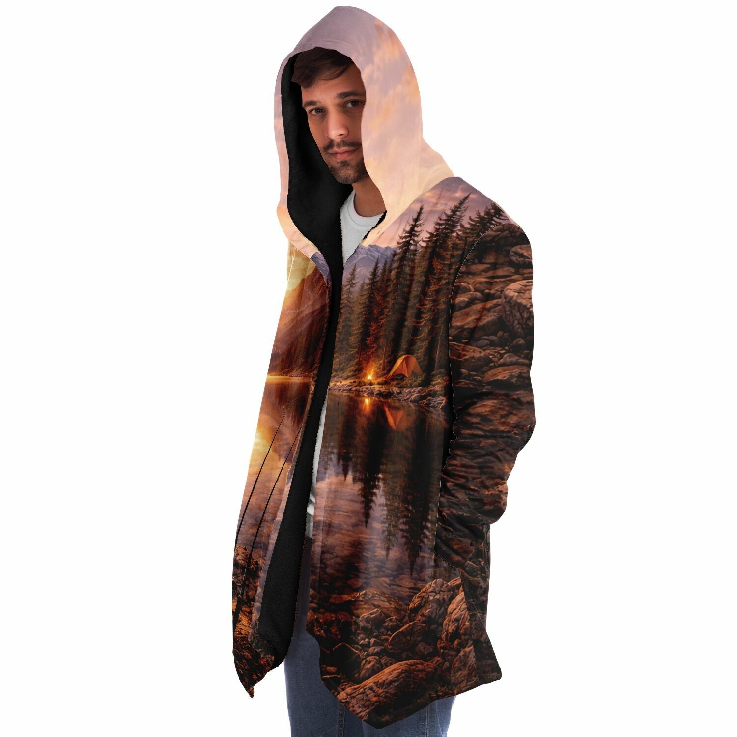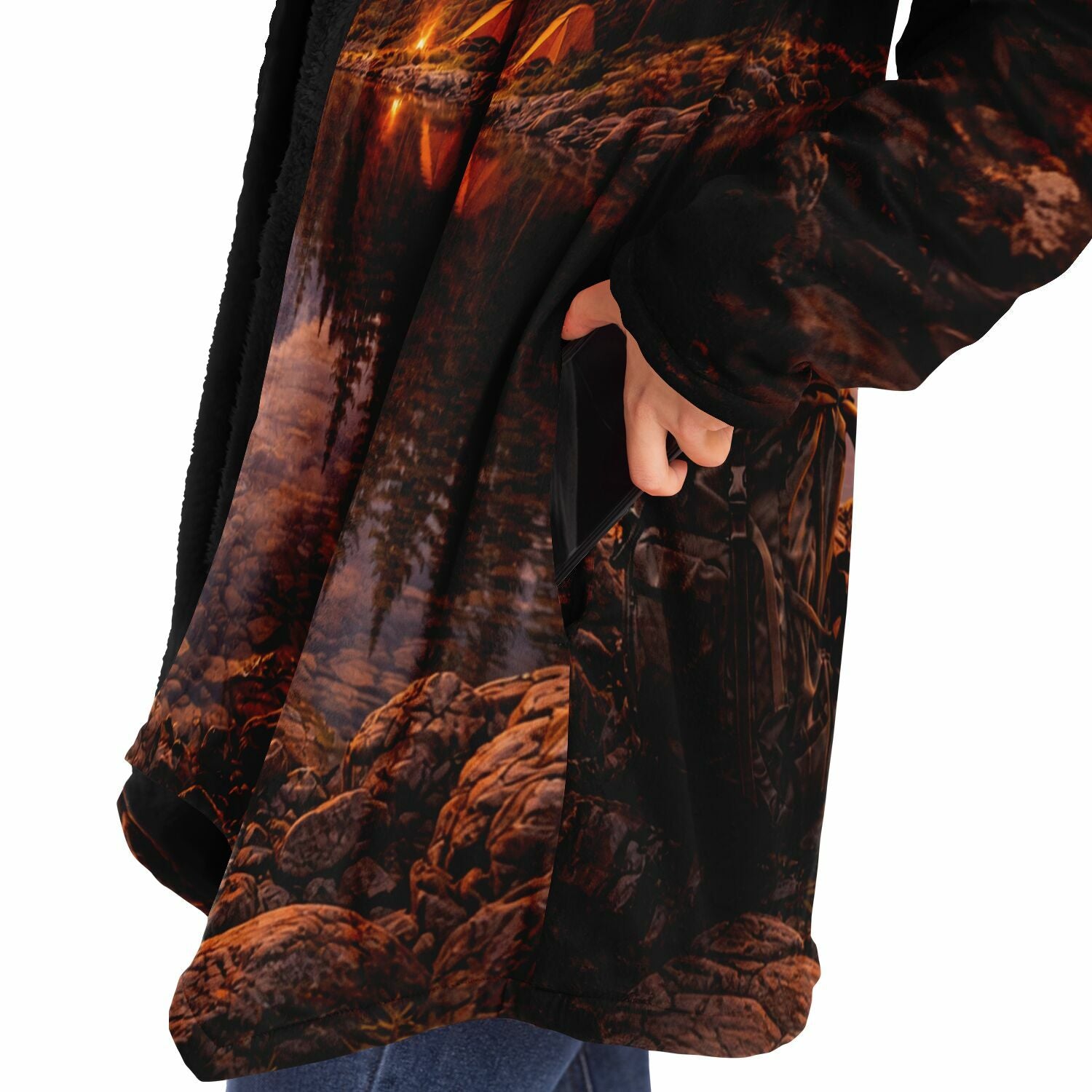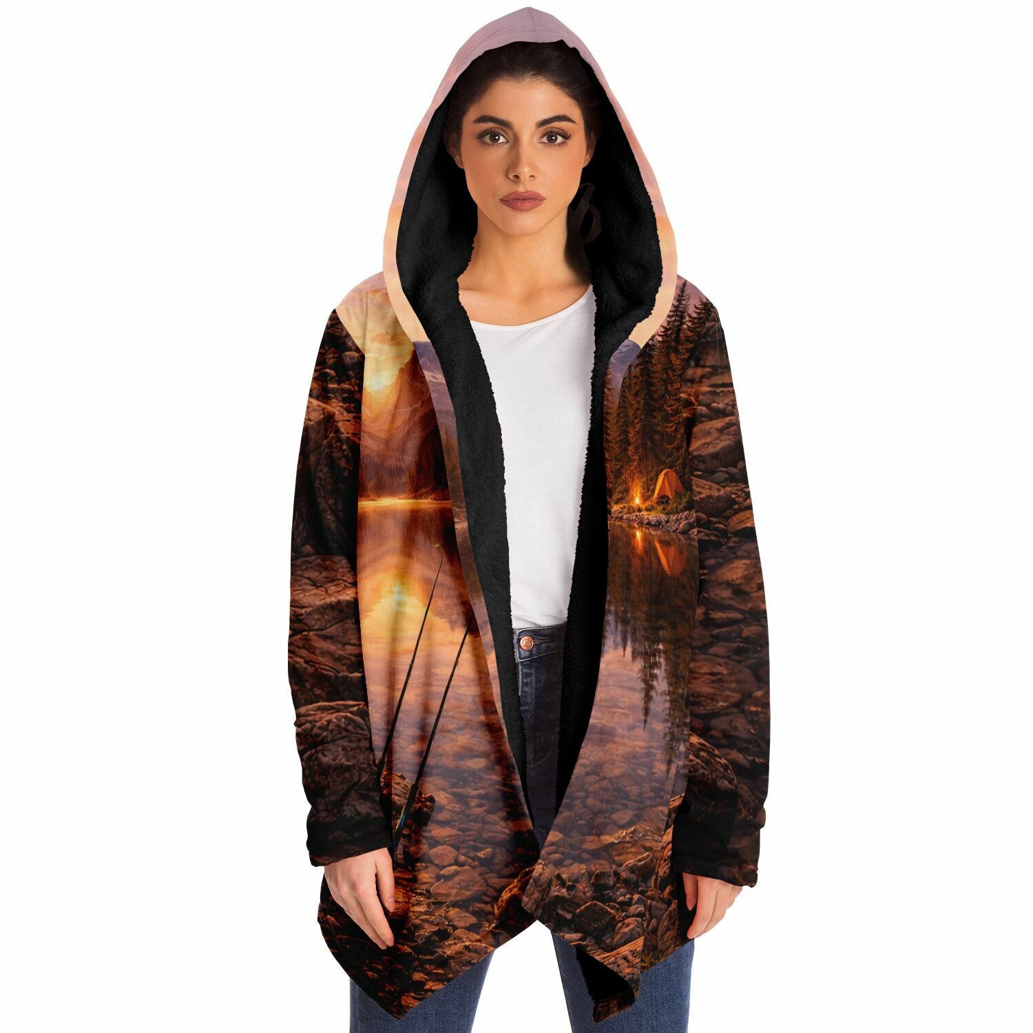 This luxurious cloak is made from an ultra-soft premium microfiber fleece lining. The outside is made with a micro-mink polyester fabric that allows the print to be high definition with vibrant colors. Featuring two deep side pockets to keep your belongings safe and your hands warm.