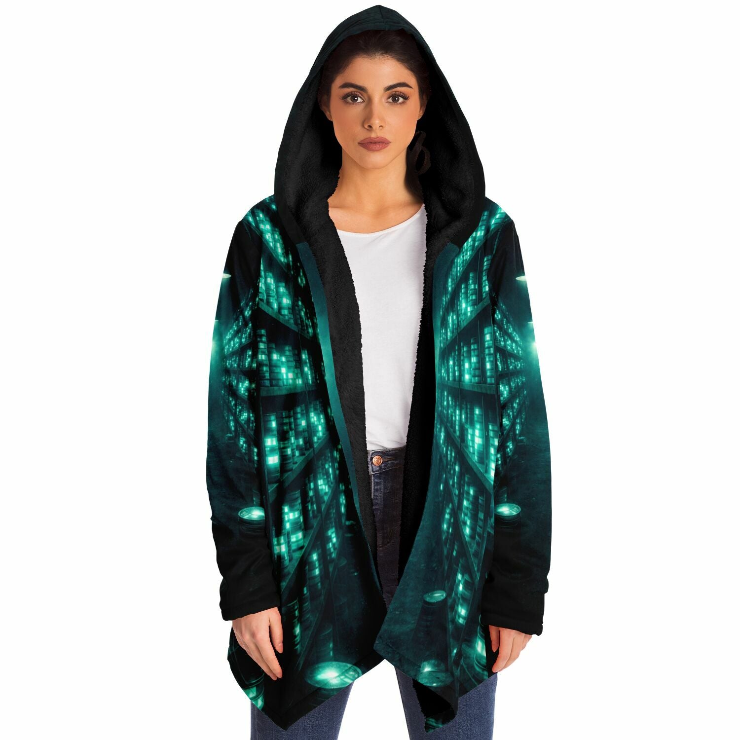 This luxurious cloak is made from an ultra-soft premium microfiber fleece lining. The outside is made with a micro-mink polyester fabric that allows the print to be high definition with vibrant colors. Featuring two deep side pockets to keep your belongings safe and your hands warm.