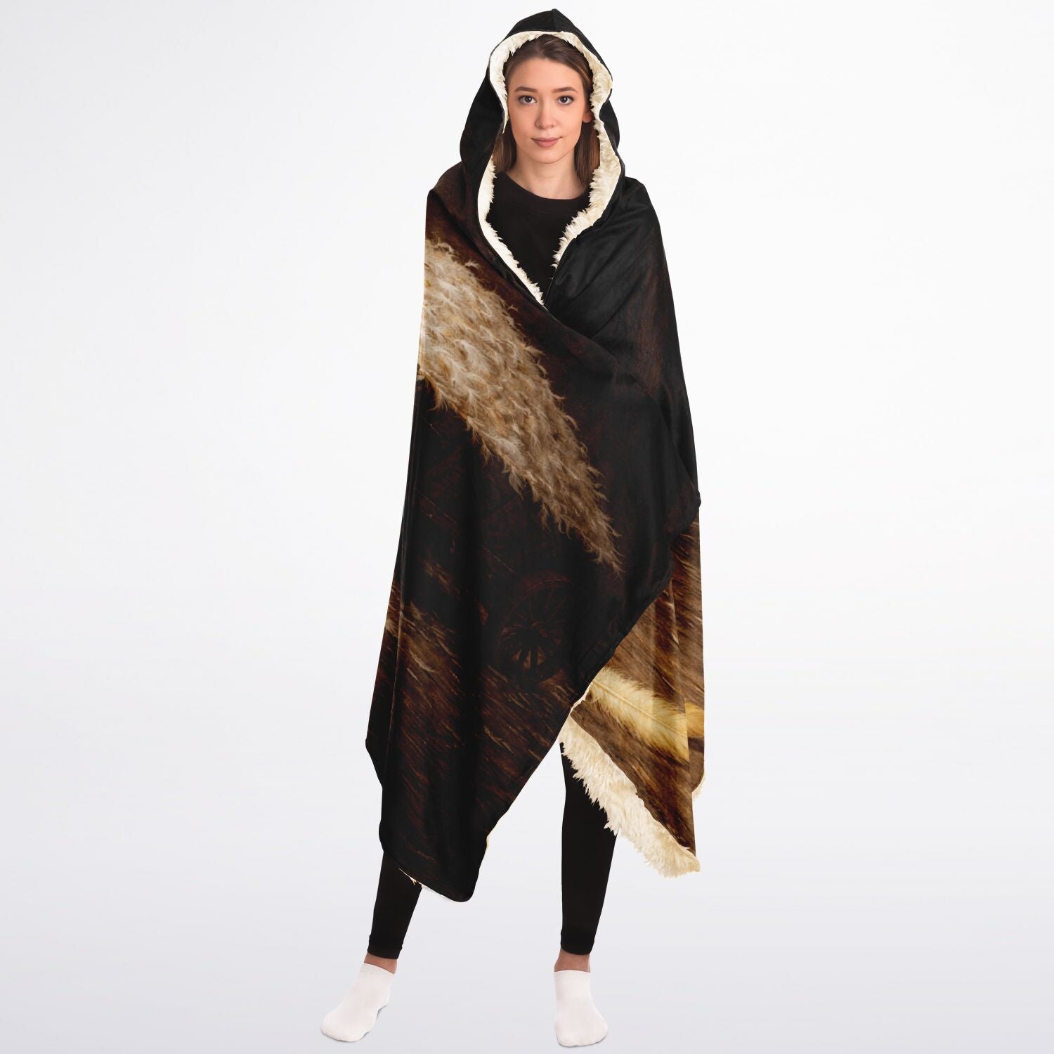 This Hooded Sherpa Blanket is crafted from an outer silky smooth micro-mink polyester face and includes a premium plush 100% polyester sherpa lining. Each hooded blanket is individually printed, cut, and sewn to ensure a flawless graphic with no imperfections.