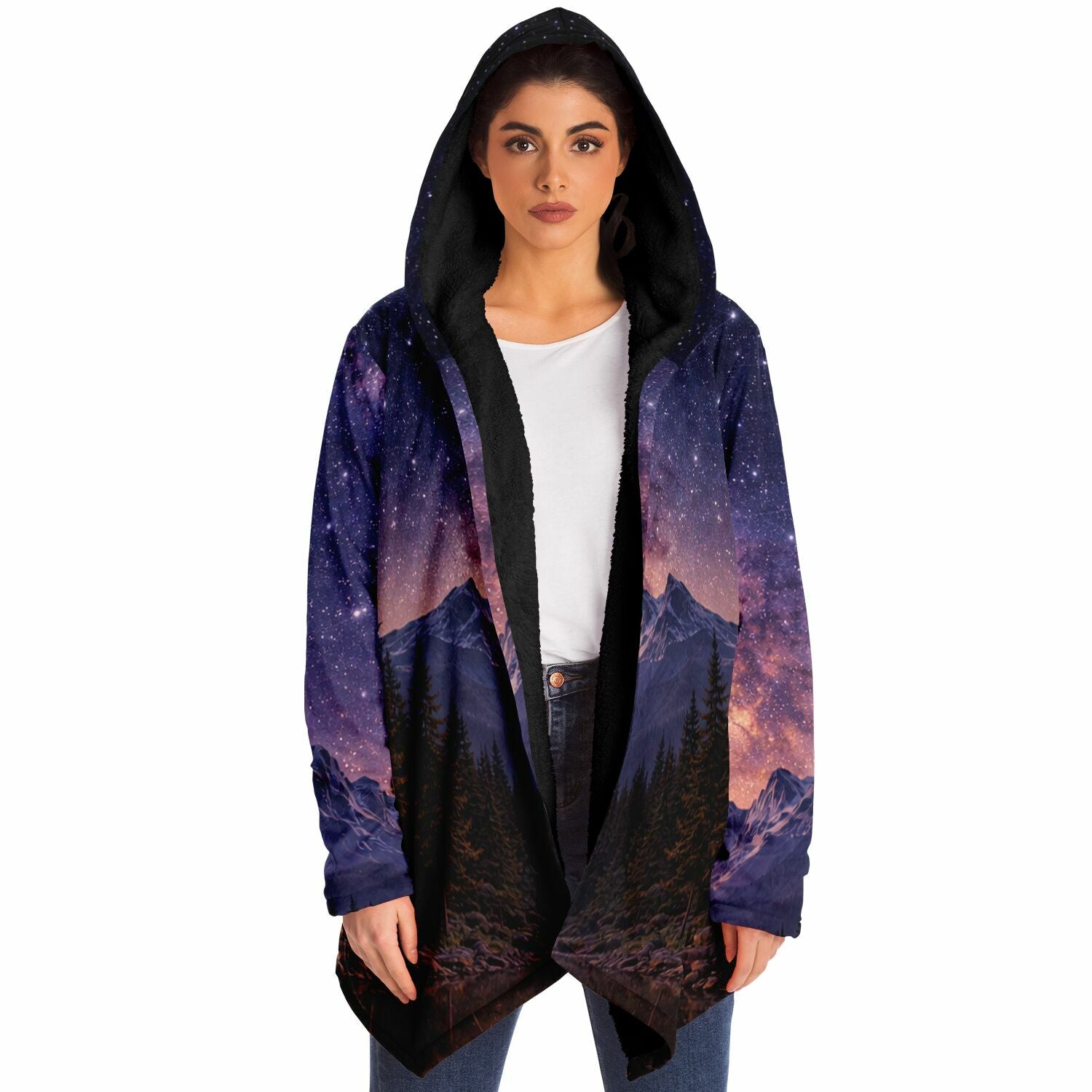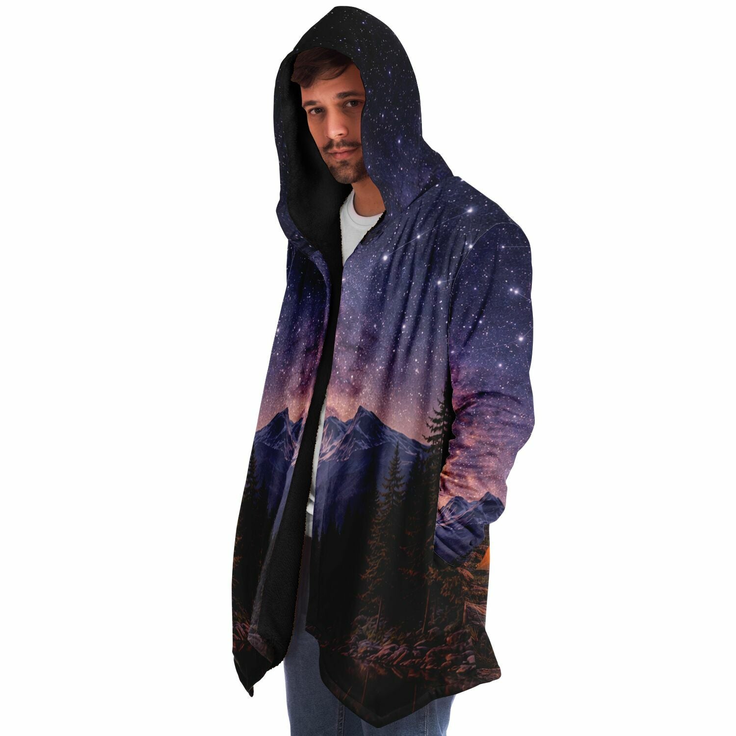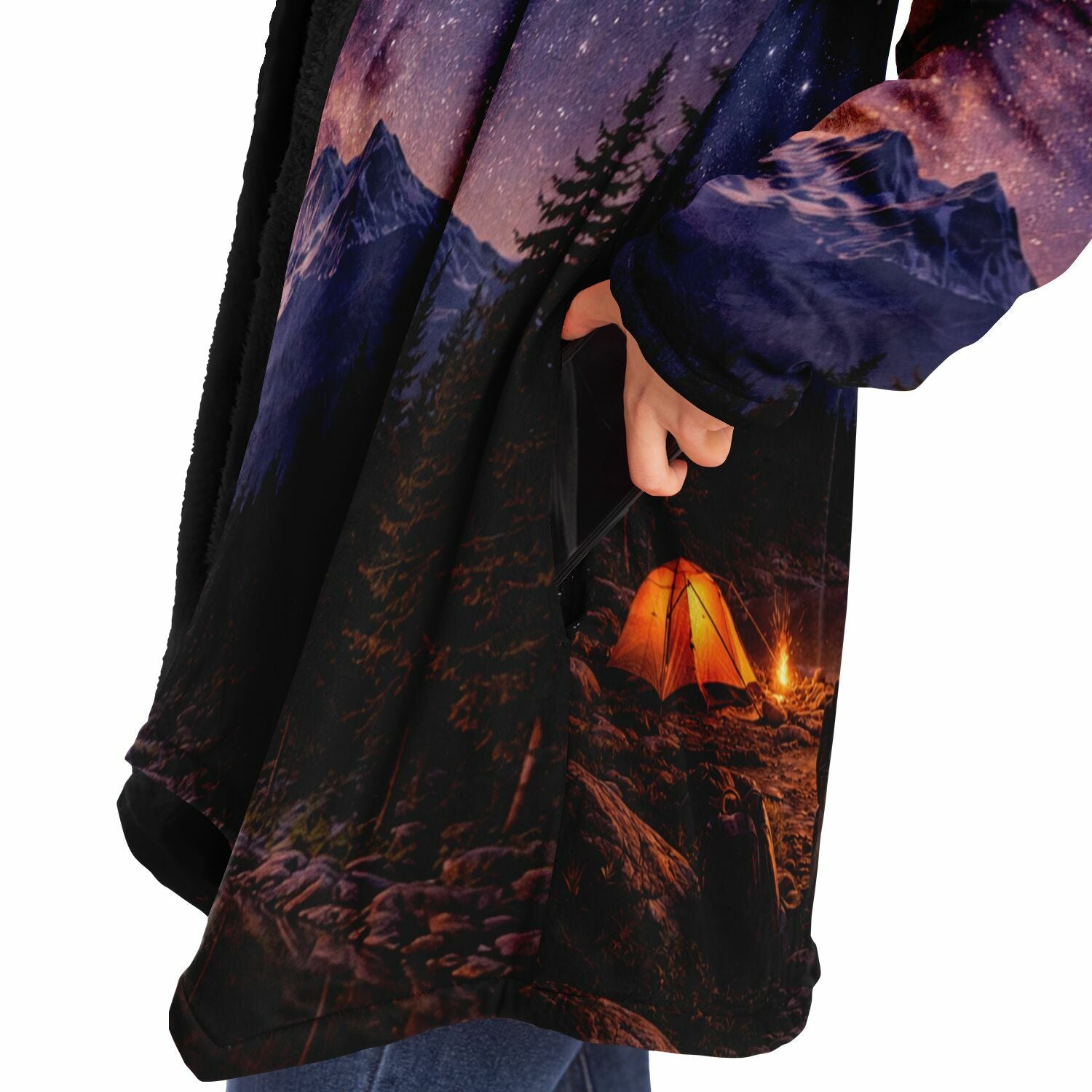 This luxurious cloak is made from an ultra-soft premium microfiber fleece lining. The outside is made with a micro-mink polyester fabric that allows the print to be high definition with vibrant colors. Featuring two deep side pockets to keep your belongings safe and your hands warm.