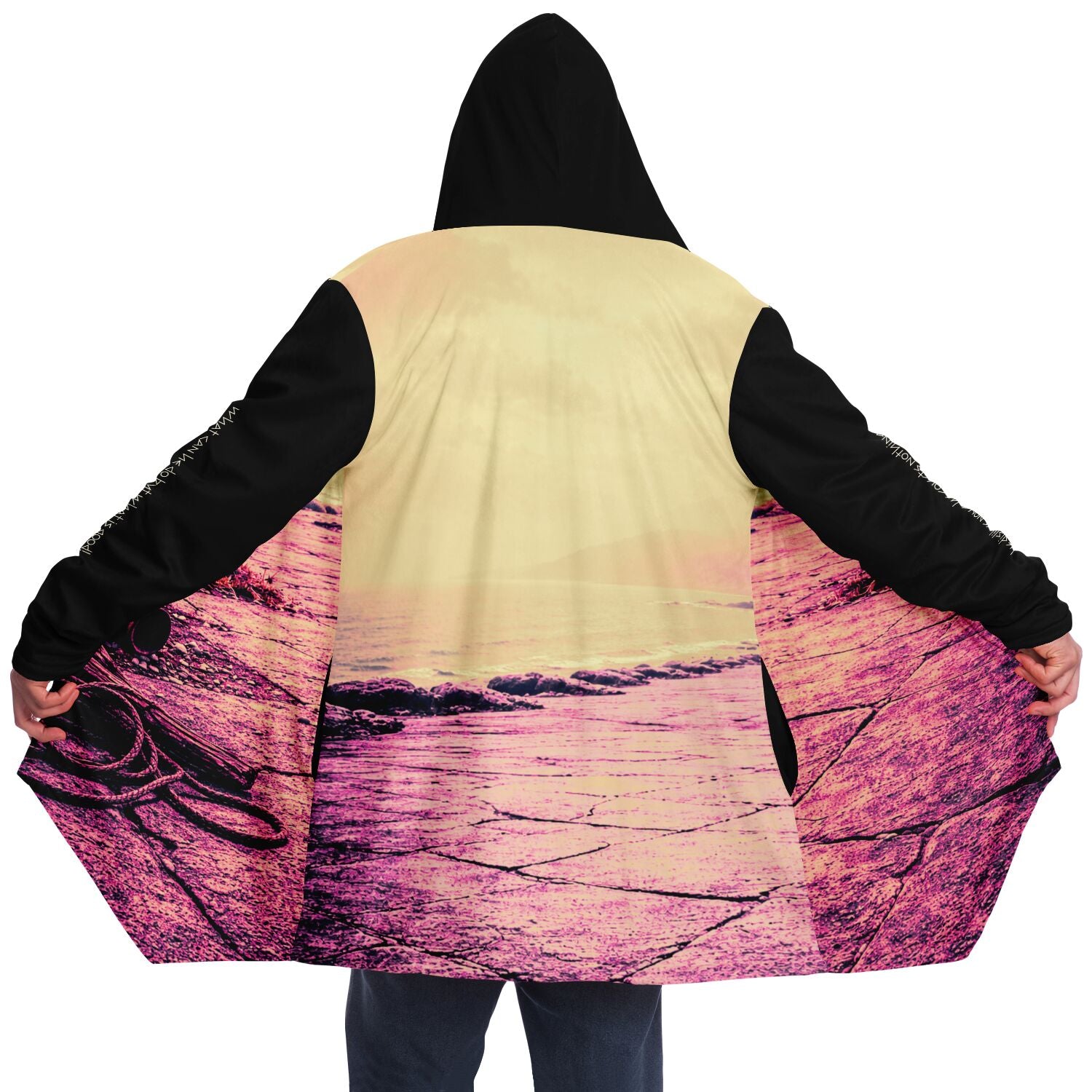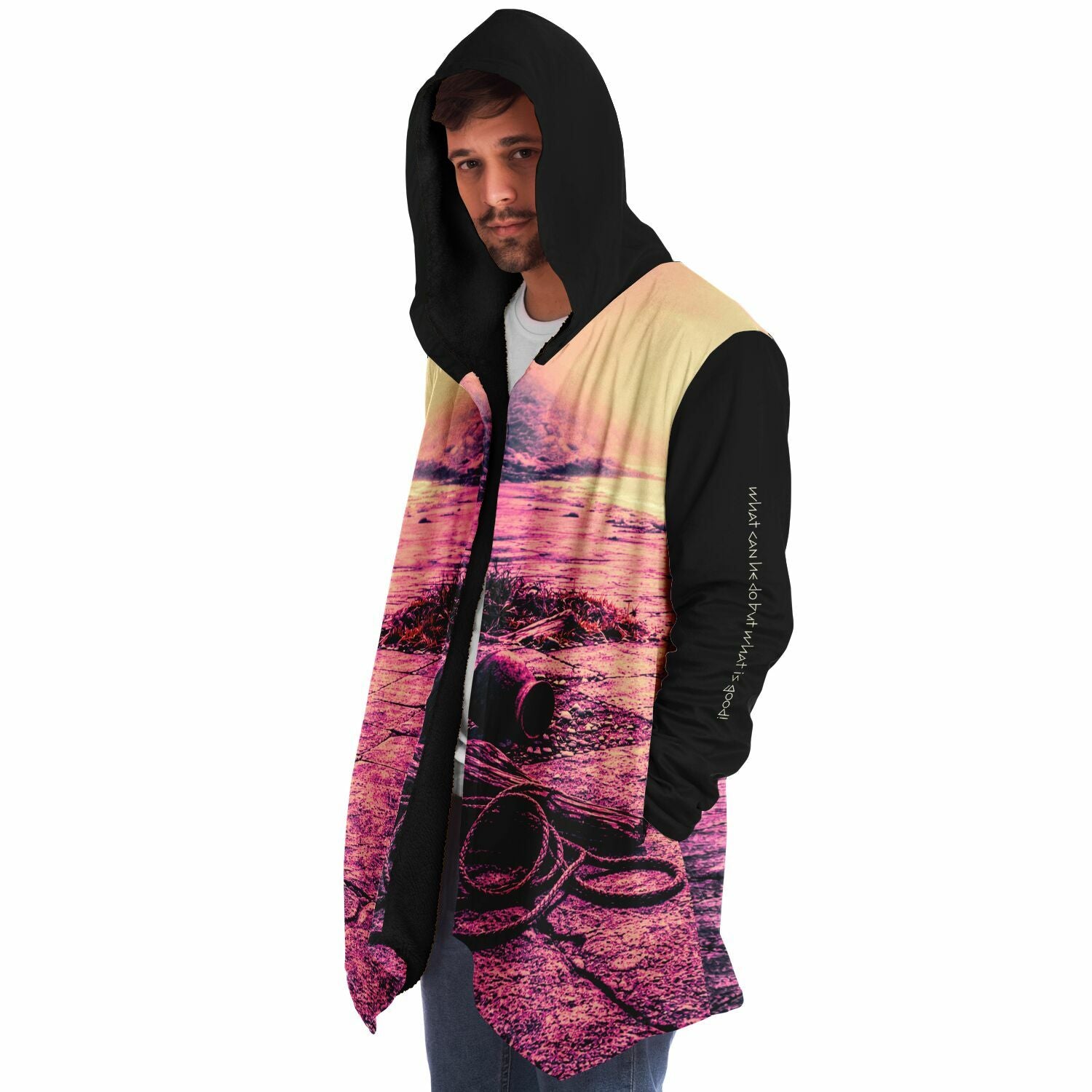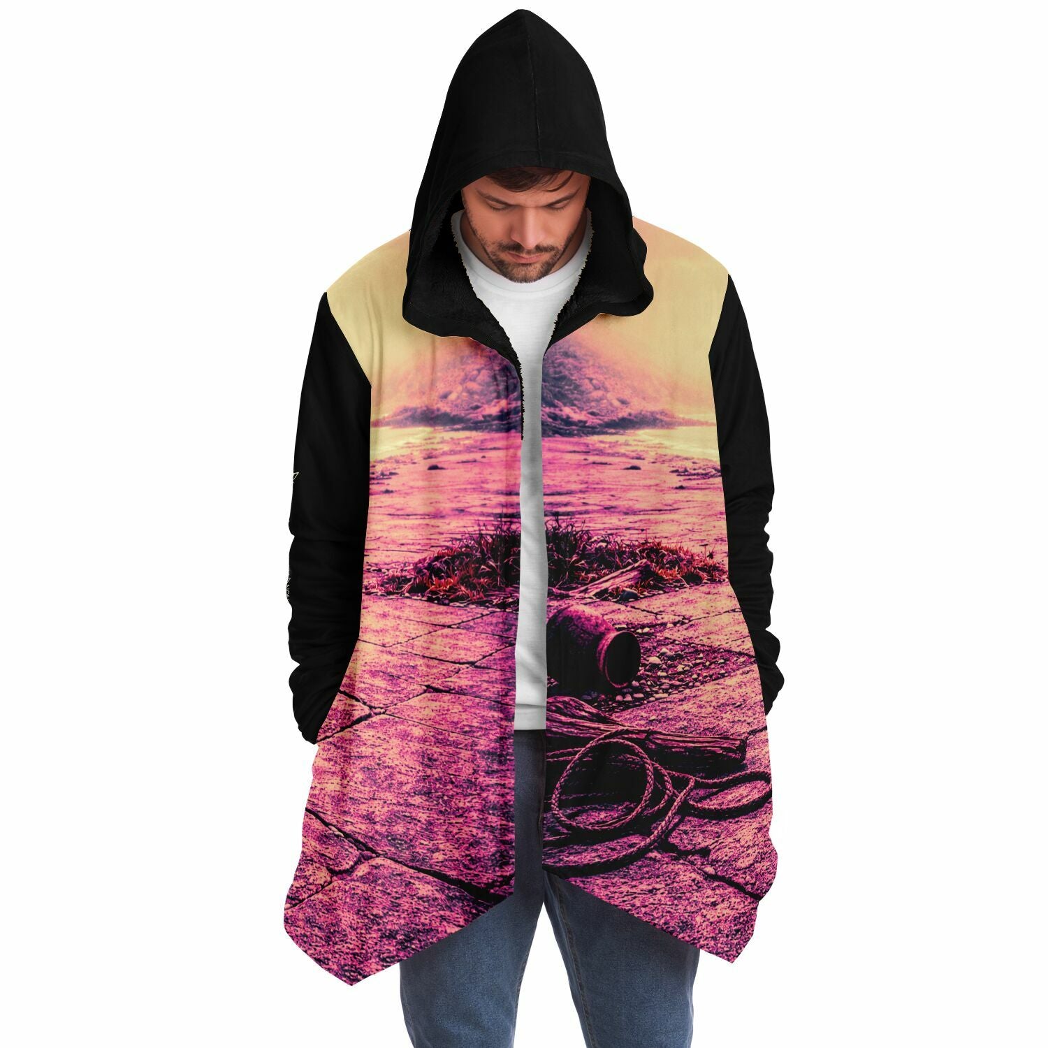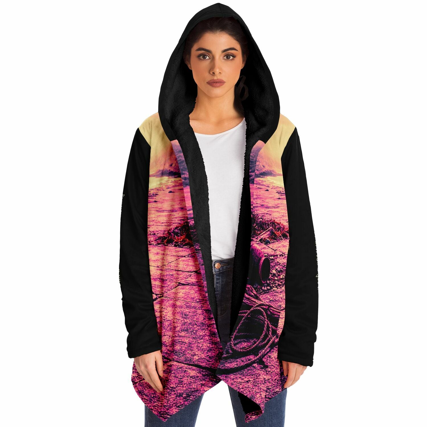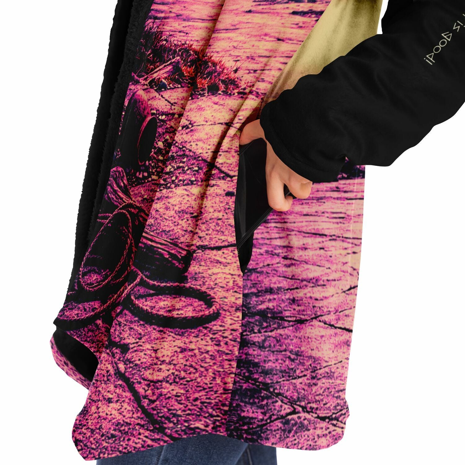 This luxurious cloak is made from an ultra-soft premium microfiber fleece lining. The outside is made with a micro-mink polyester fabric that allows the print to be high definition with vibrant colors. Featuring two deep side pockets to keep your belongings safe and your hands warm.