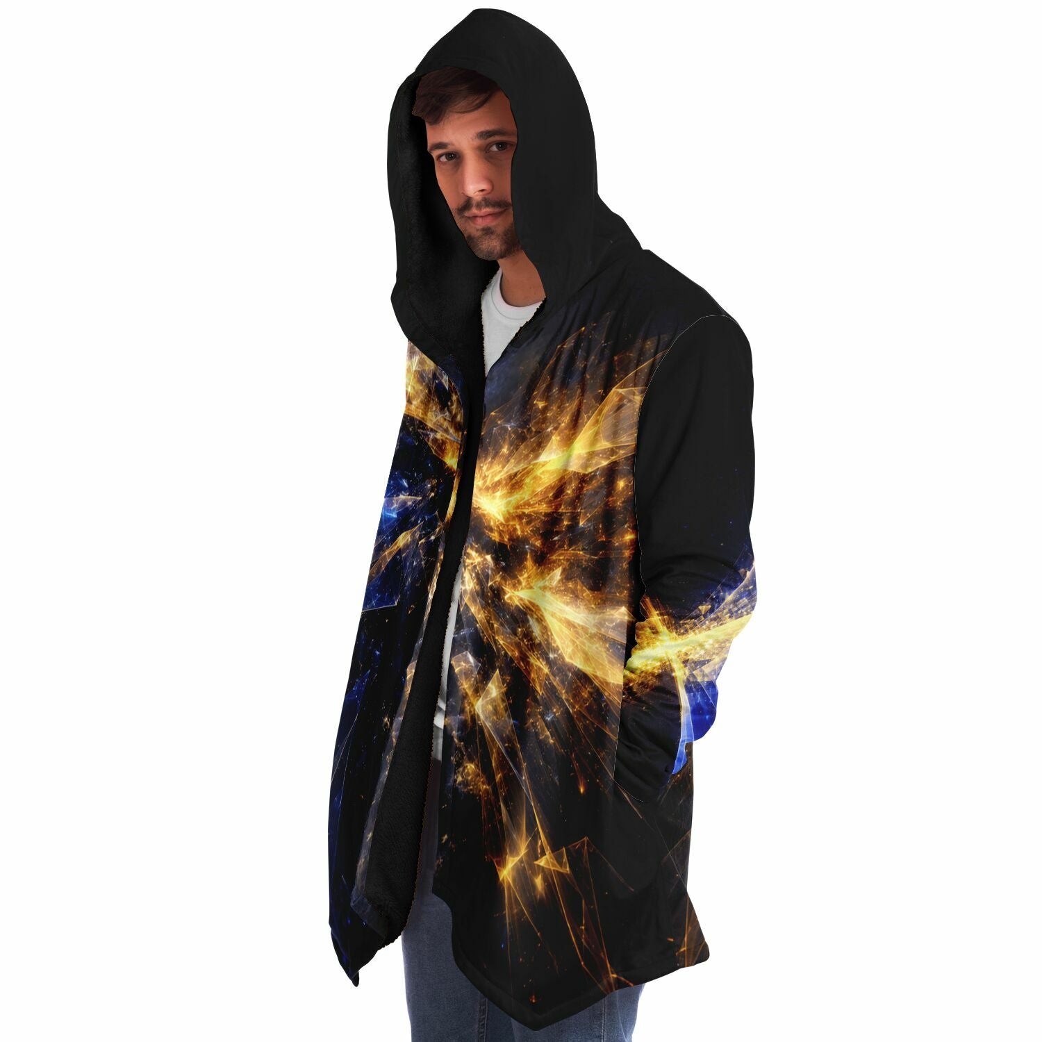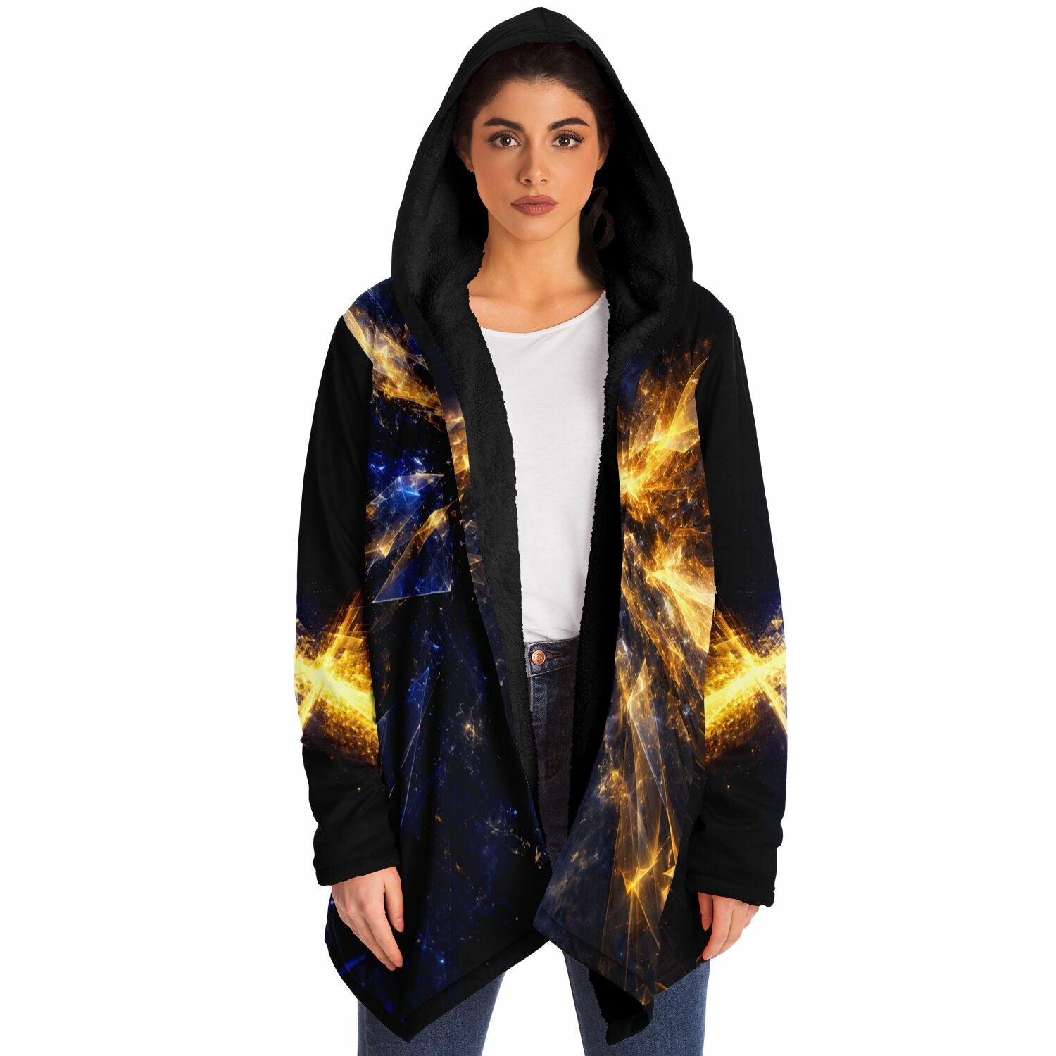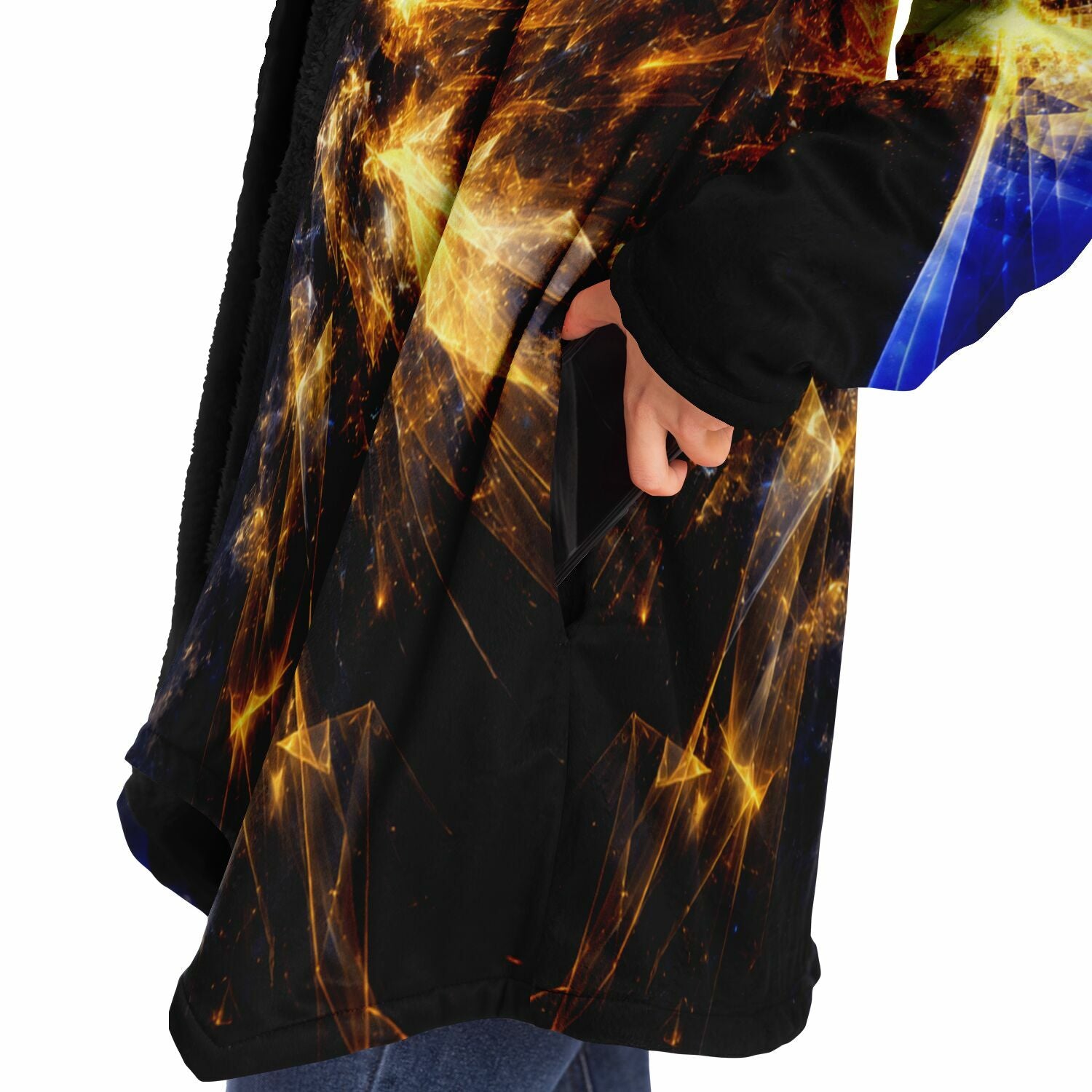 This luxurious cloak is made from an ultra-soft premium microfiber fleece lining. The outside is made with a micro-mink polyester fabric that allows the print to be high definition with vibrant colors. Featuring two deep side pockets to keep your belongings safe and your hands warm.