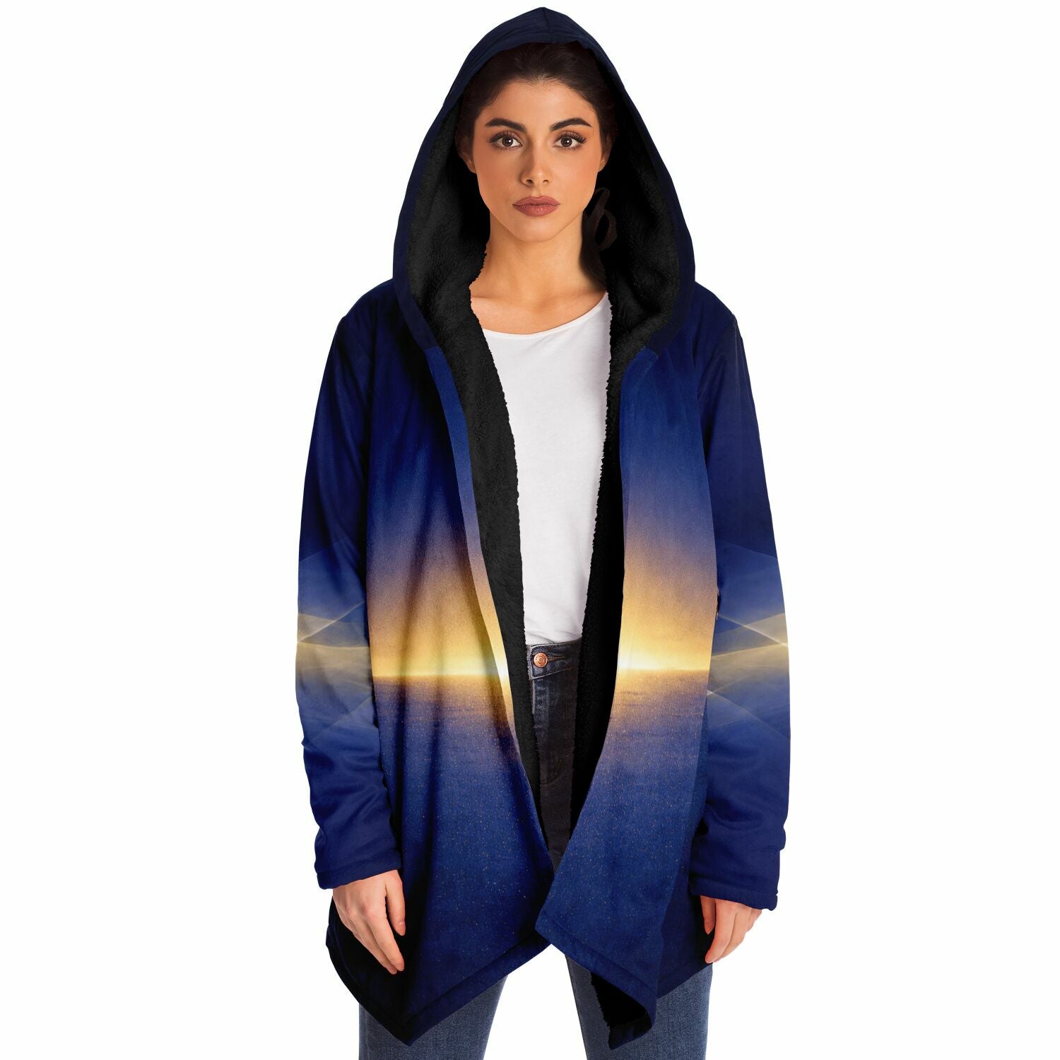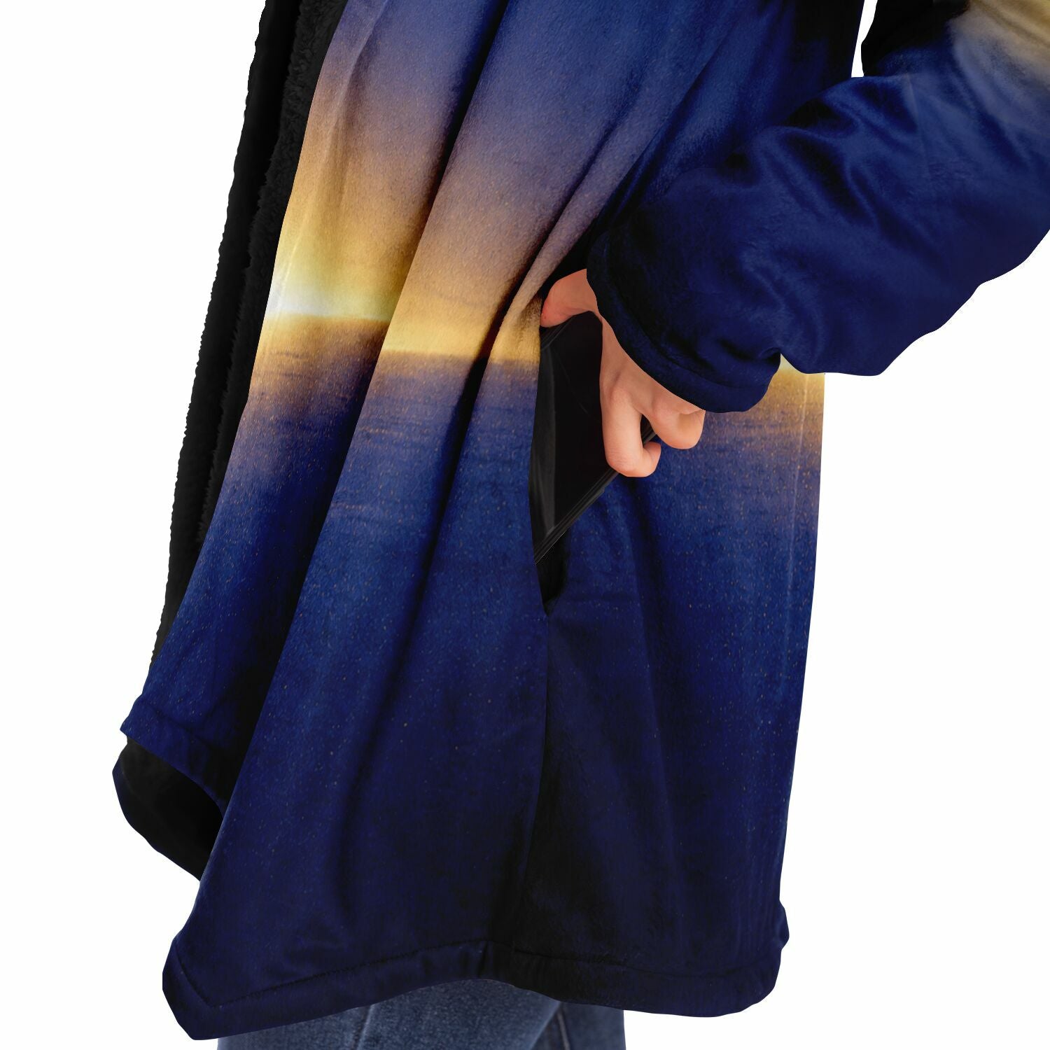 This luxurious cloak is made from an ultra-soft premium microfiber fleece lining. The outside is made with a micro-mink polyester fabric that allows the print to be high definition with vibrant colors. Featuring two deep side pockets to keep your belongings safe and your hands warm.