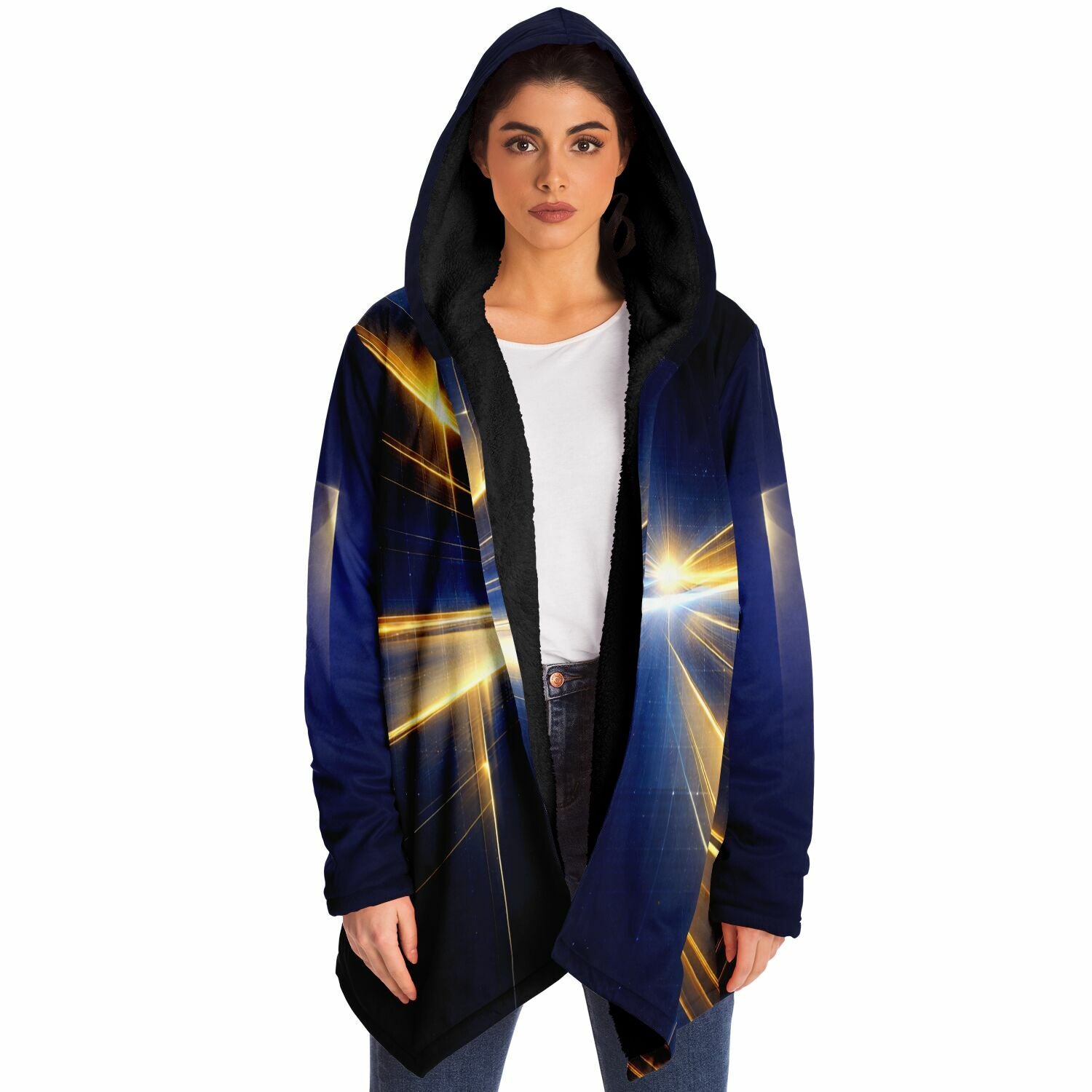 This luxurious cloak is made from an ultra-soft premium microfiber fleece lining. The outside is made with a micro-mink polyester fabric that allows the print to be high definition with vibrant colors. Featuring two deep side pockets to keep your belongings safe and your hands warm.