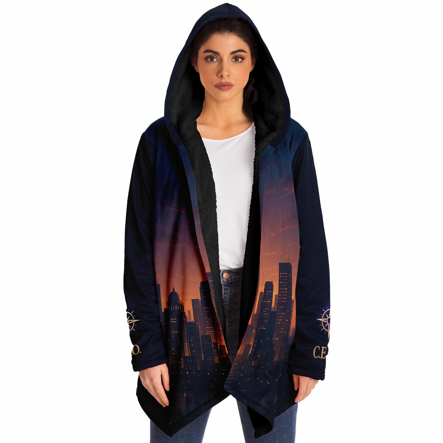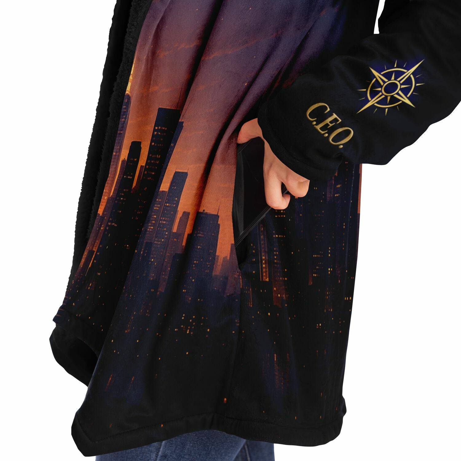 This luxurious cloak is made from an ultra-soft premium microfiber fleece lining. The outside is made with a micro-mink polyester fabric that allows the print to be high definition with vibrant colors. Featuring two deep side pockets to keep your belongings safe and your hands warm.