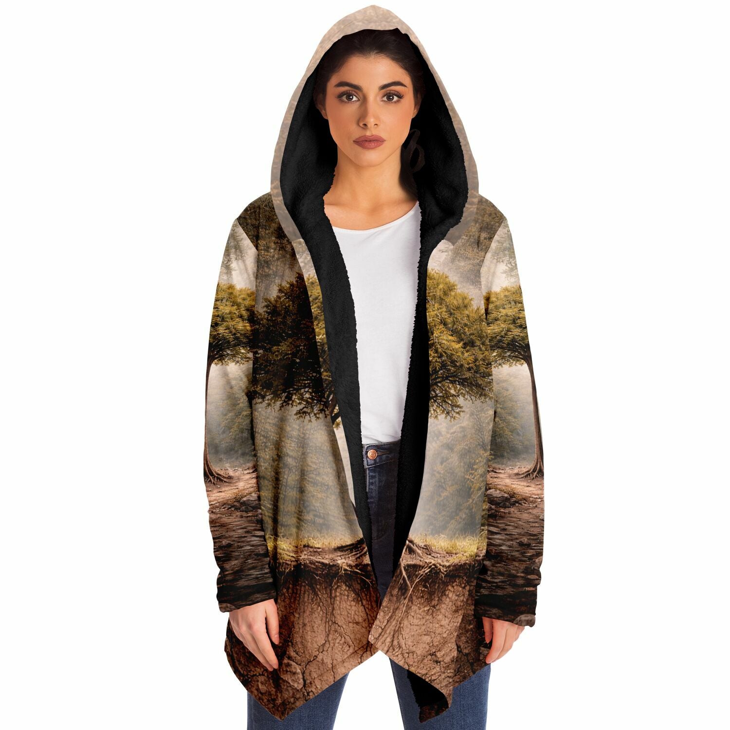 This luxurious cloak is made from an ultra-soft premium microfiber fleece lining. The outside is made with a micro-mink polyester fabric that allows the print to be high definition with vibrant colors. Featuring two deep side pockets to keep your belongings safe and your hands warm.