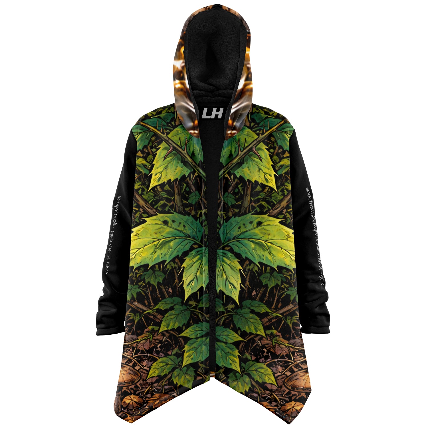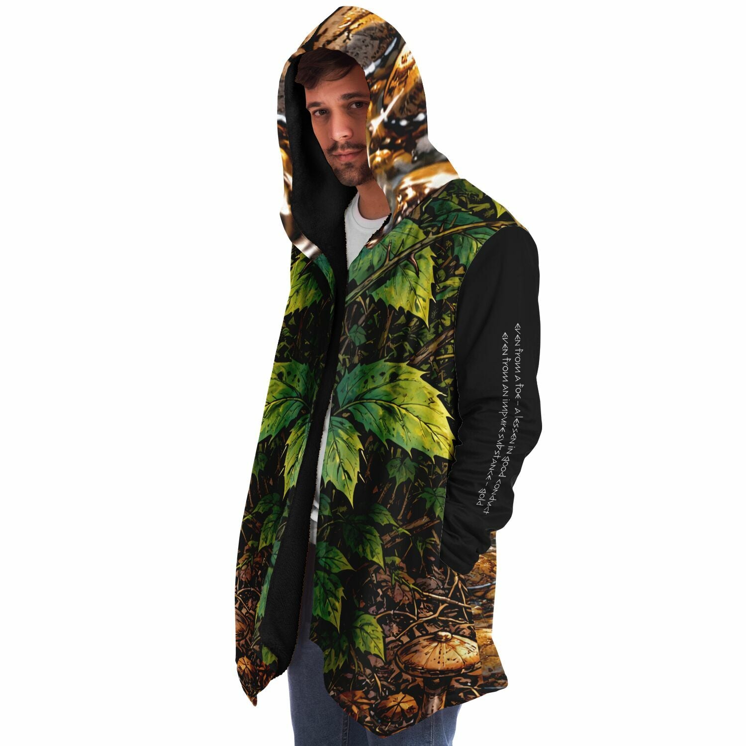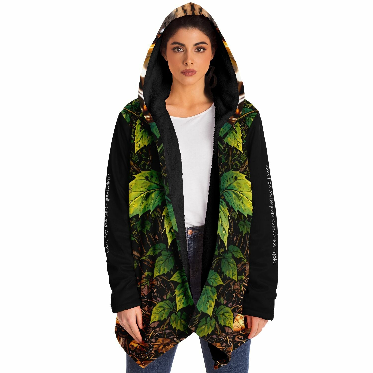 This luxurious cloak is made from an ultra-soft premium microfiber fleece lining. The outside is made with a micro-mink polyester fabric that allows the print to be high definition with vibrant colors. Featuring two deep side pockets to keep your belongings safe and your hands warm.