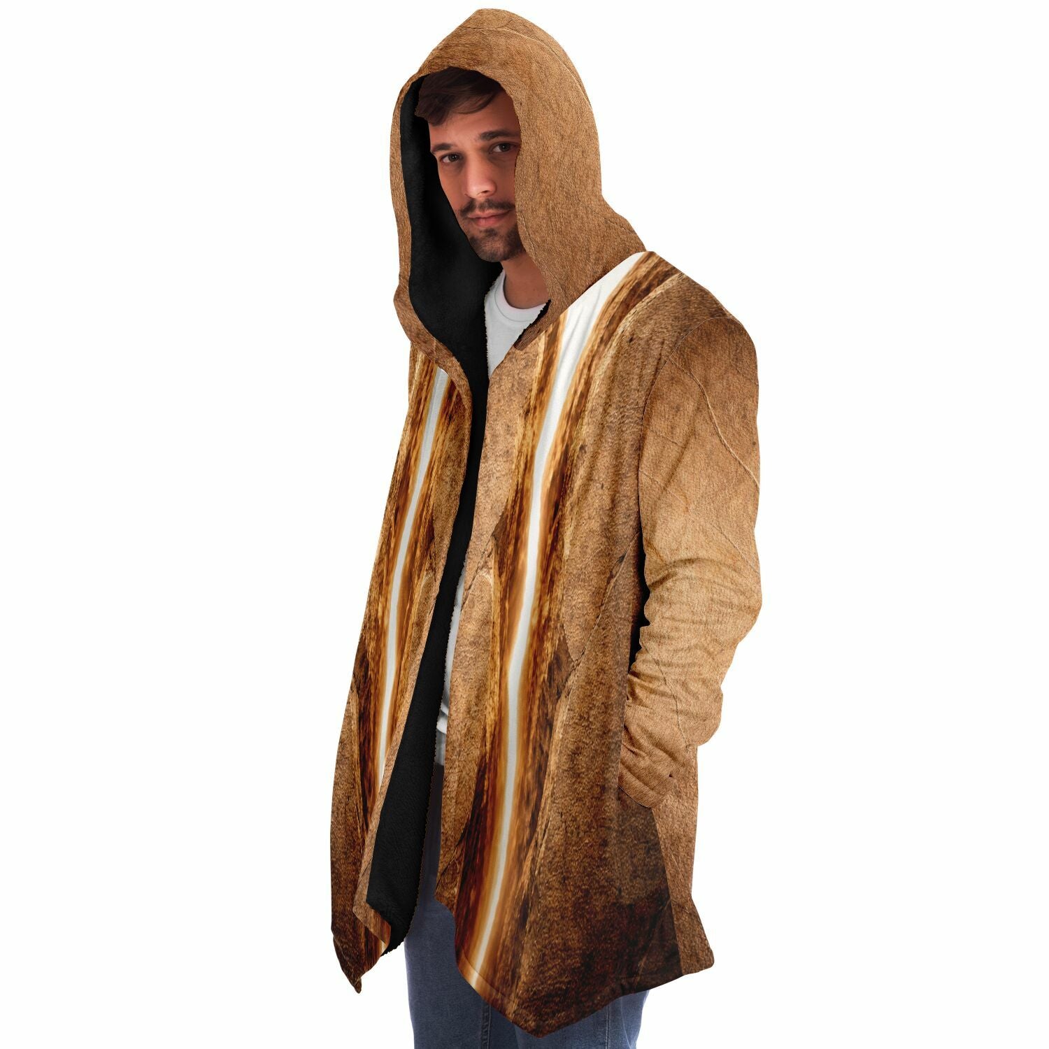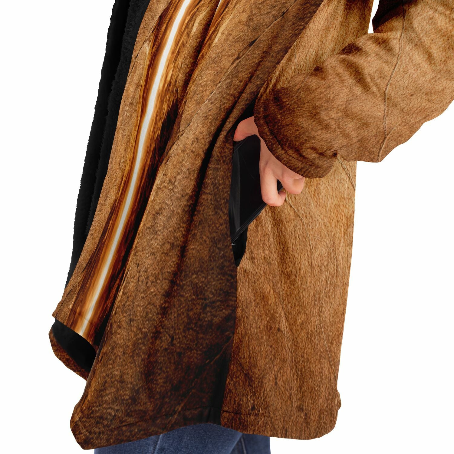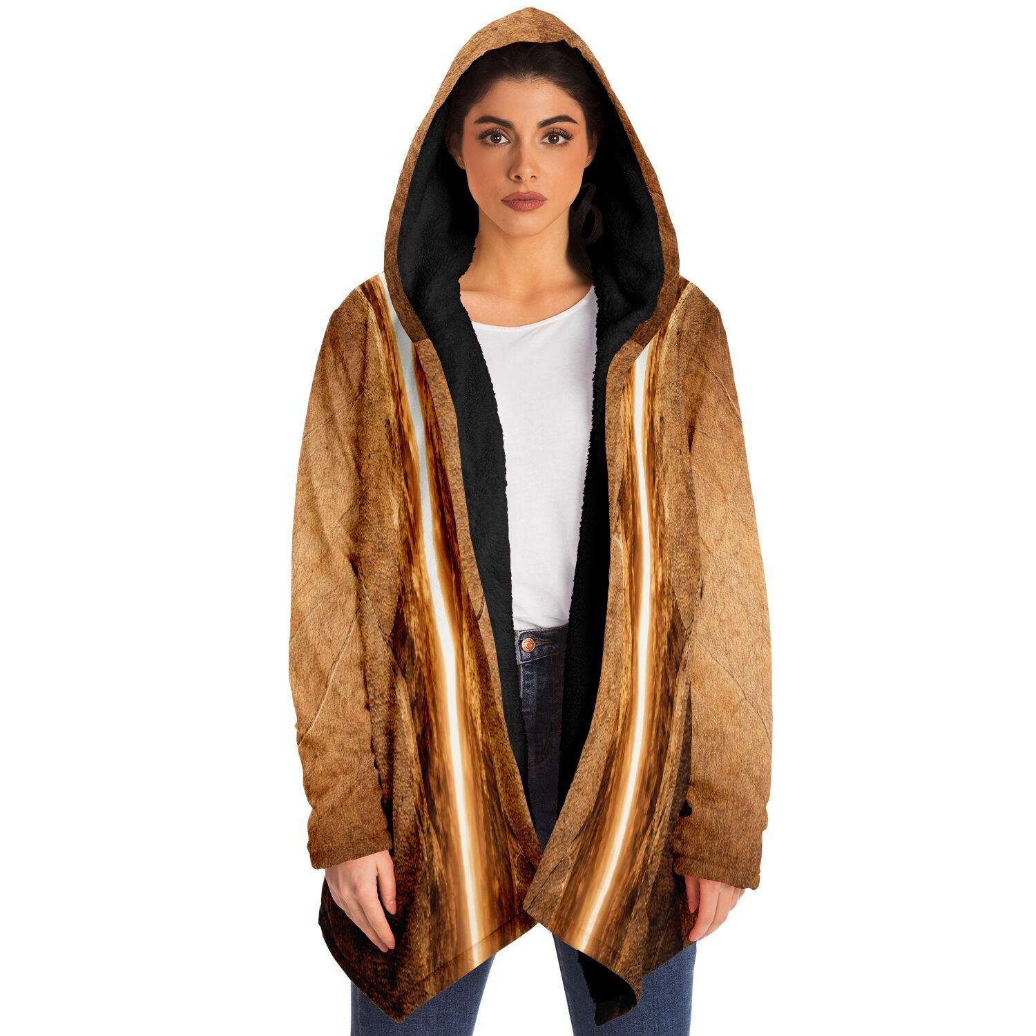 This luxurious cloak is made from an ultra-soft premium microfiber fleece lining. The outside is made with a micro-mink polyester fabric that allows the print to be high definition with vibrant colors. Featuring two deep side pockets to keep your belongings safe and your hands warm.