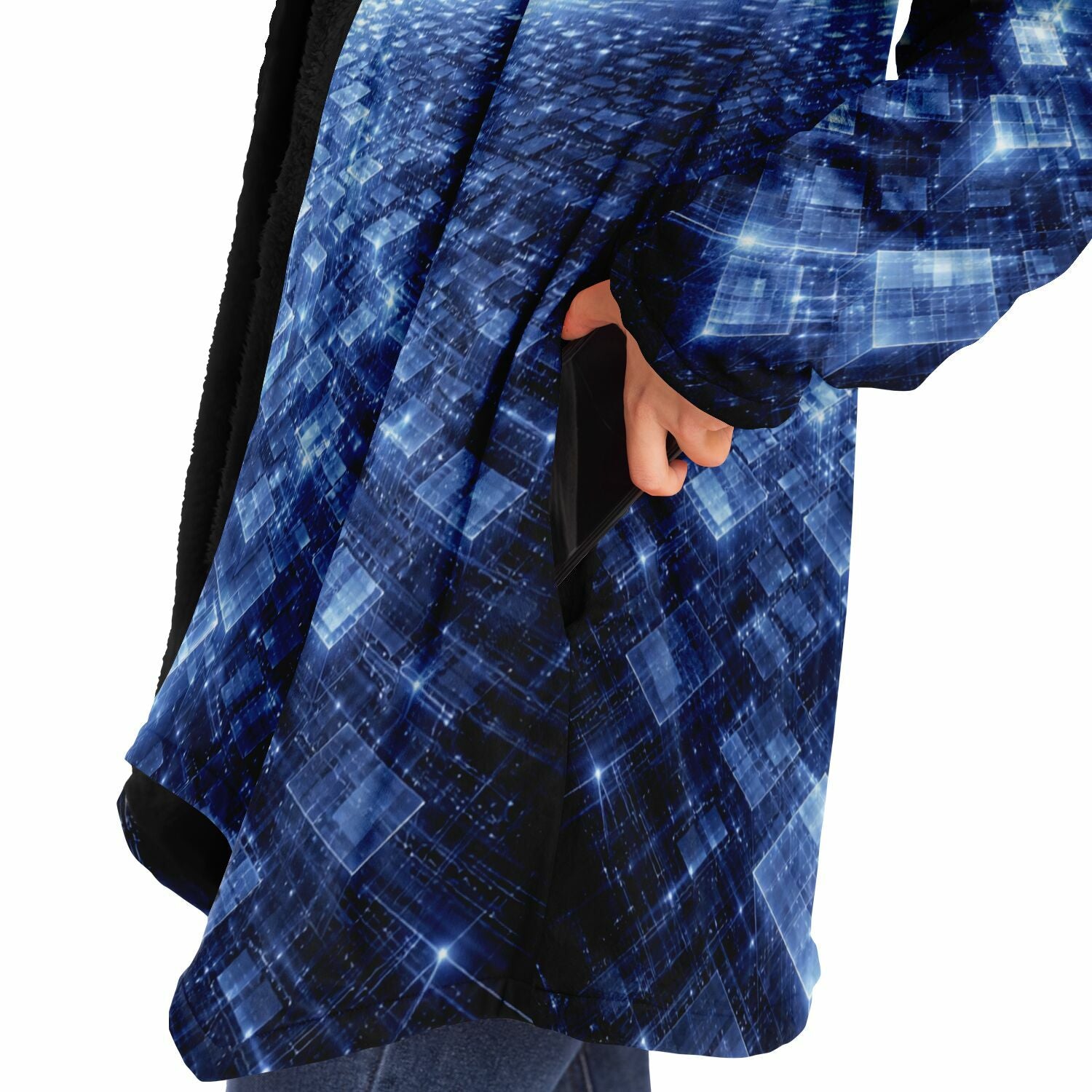 This luxurious cloak is made from an ultra-soft premium microfiber fleece lining. The outside is made with a micro-mink polyester fabric that allows the print to be high definition with vibrant colors. Featuring two deep side pockets to keep your belongings safe and your hands warm.