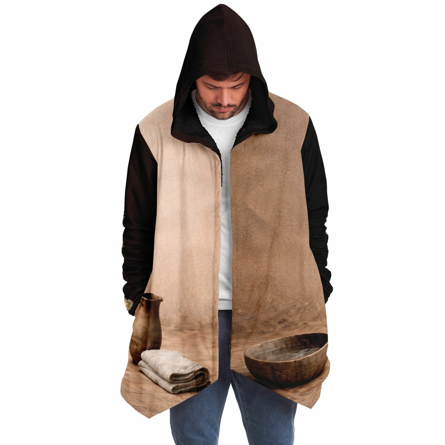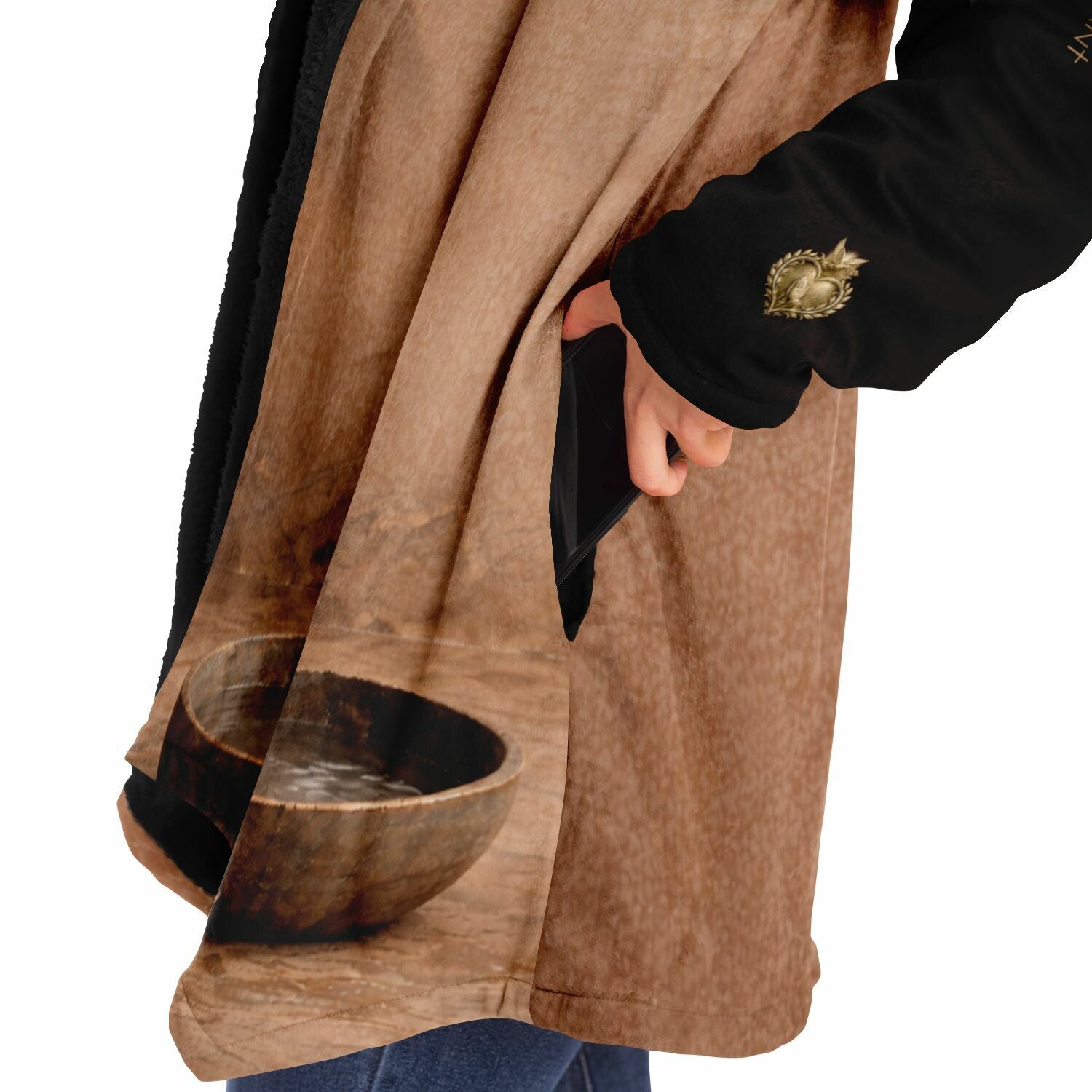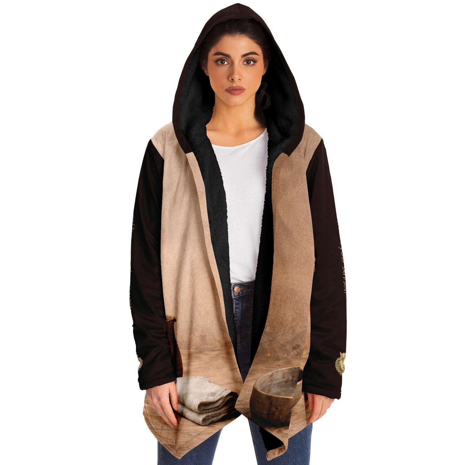 This luxurious cloak is made from an ultra-soft premium microfiber fleece lining. The outside is made with a micro-mink polyester fabric that allows the print to be high definition with vibrant colors. Featuring two deep side pockets to keep your belongings safe and your hands warm.