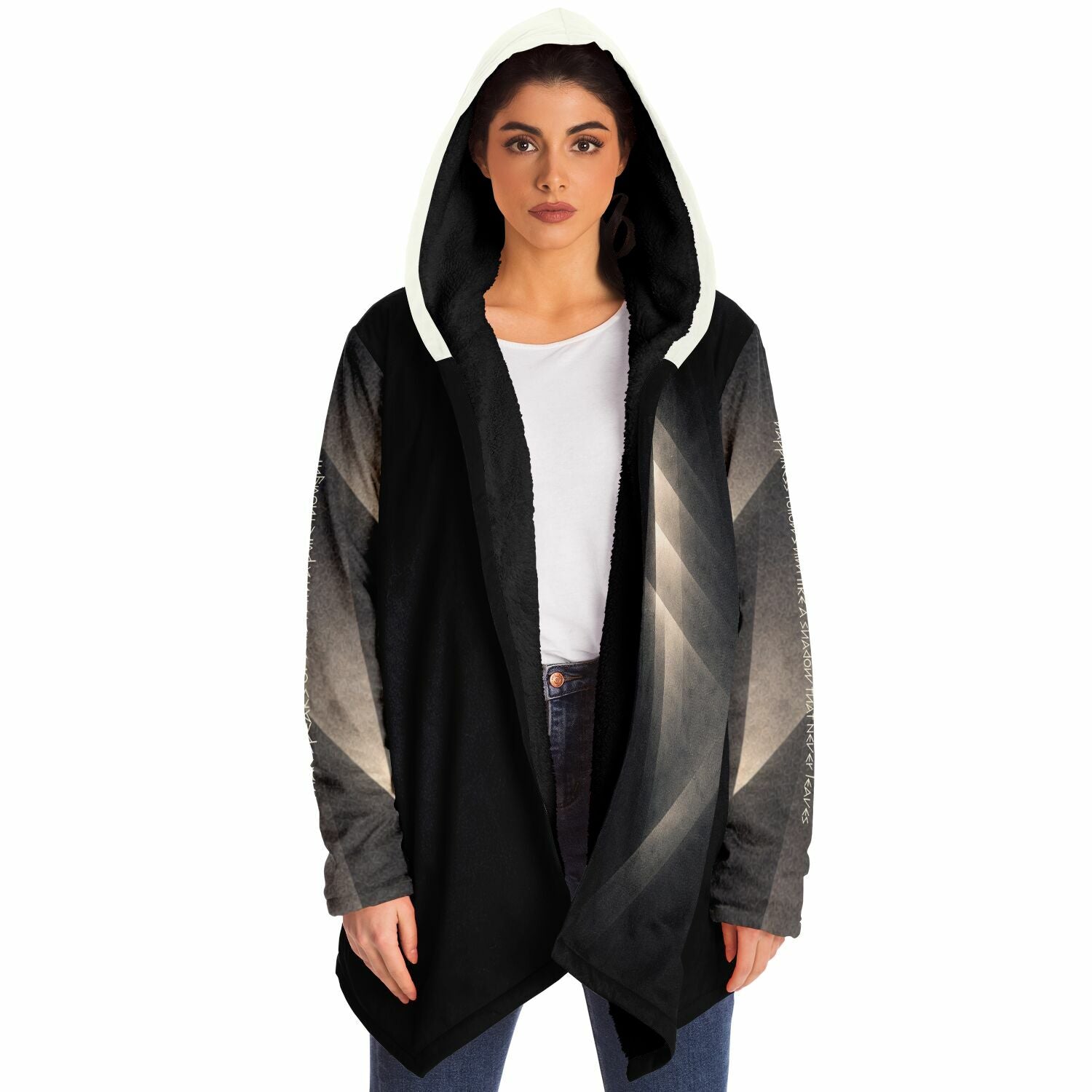This luxurious cloak is made from an ultra-soft premium microfiber fleece lining. The outside is made with a micro-mink polyester fabric that allows the print to be high definition with vibrant colors. Featuring two deep side pockets to keep your belongings safe and your hands warm.