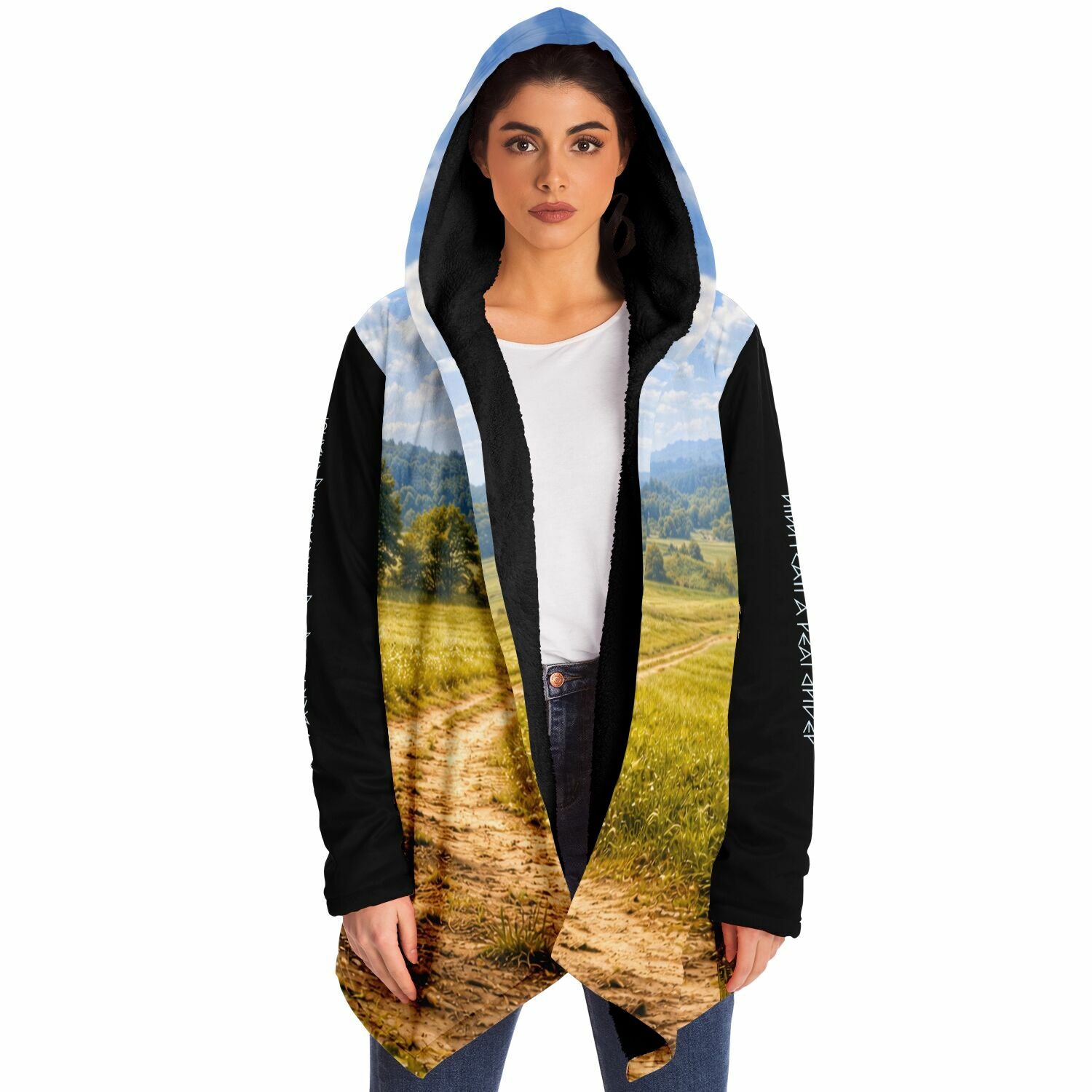This luxurious cloak is made from an ultra-soft premium microfiber fleece lining. The outside is made with a micro-mink polyester fabric that allows the print to be high definition with vibrant colors. Featuring two deep side pockets to keep your belongings safe and your hands warm.