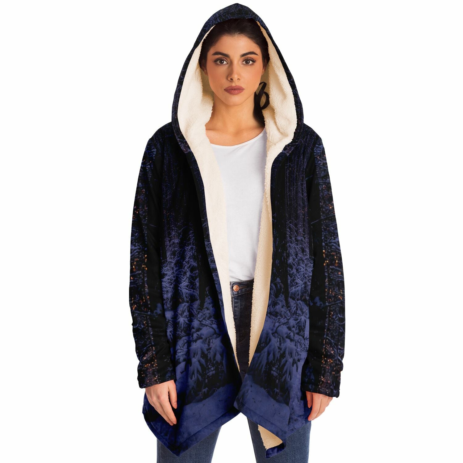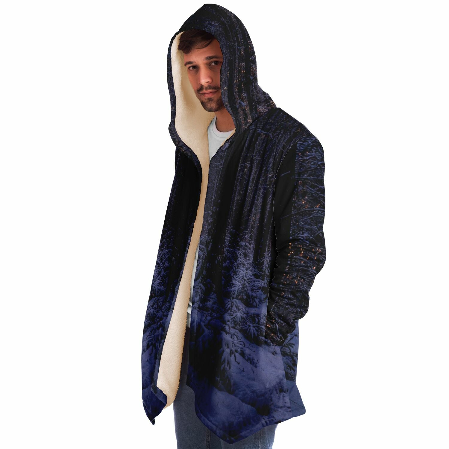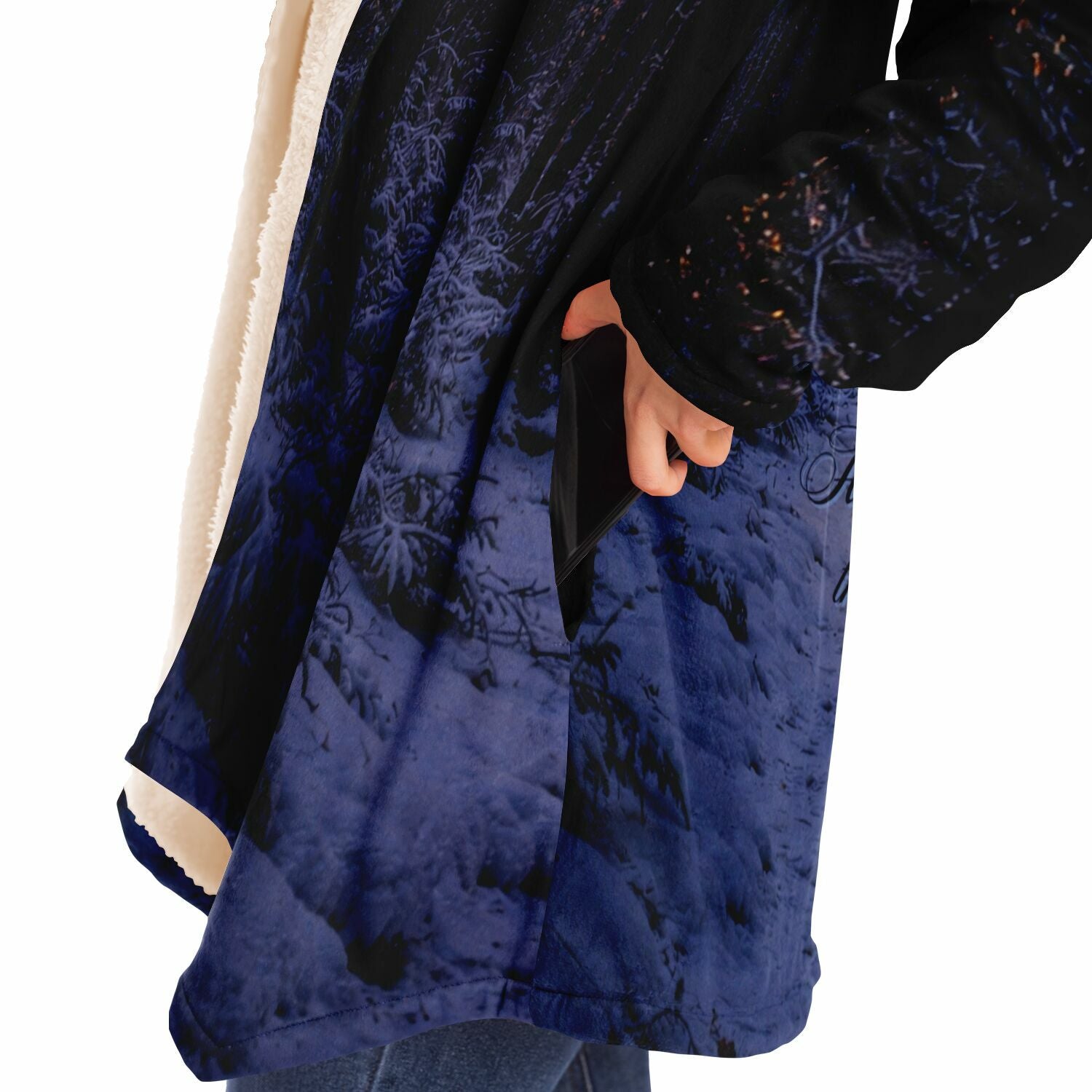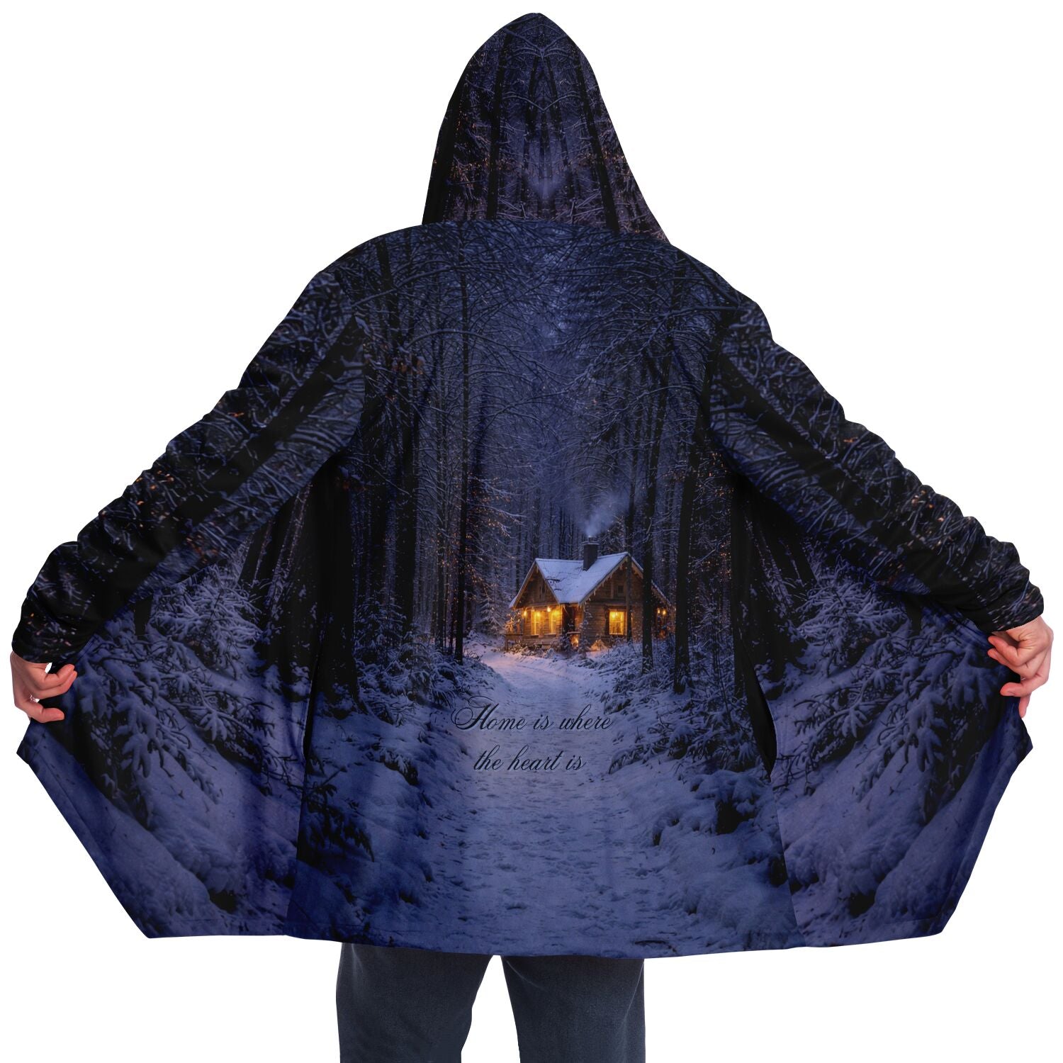 This luxurious cloak is made from an ultra-soft premium microfiber fleece lining. The outside is made with a micro-mink polyester fabric that allows the print to be high definition with vibrant colors. Featuring two deep side pockets to keep your belongings safe and your hands warm.