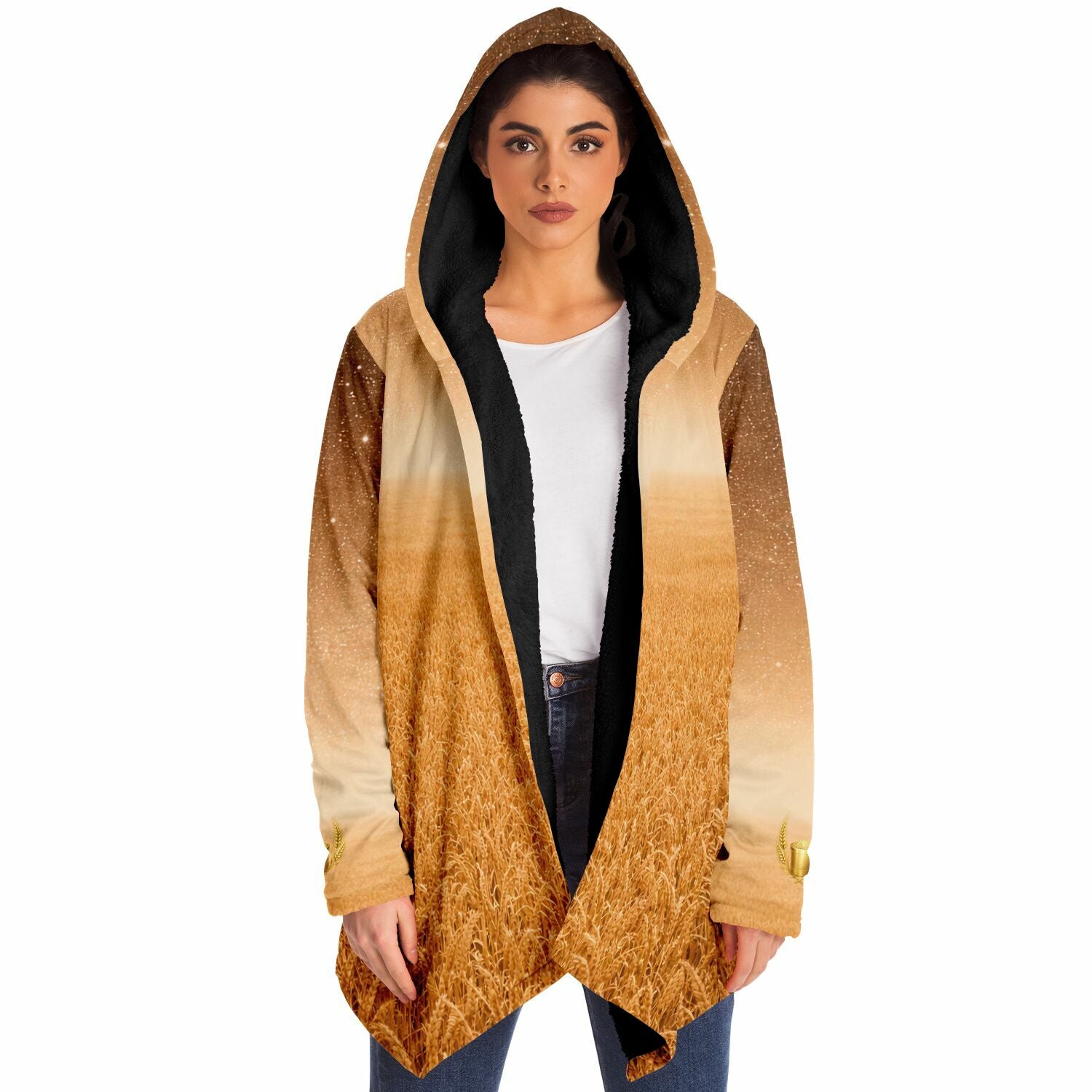This luxurious cloak is made from an ultra-soft premium microfiber fleece lining. The outside is made with a micro-mink polyester fabric that allows the print to be high definition with vibrant colors. Featuring two deep side pockets to keep your belongings safe and your hands warm.
