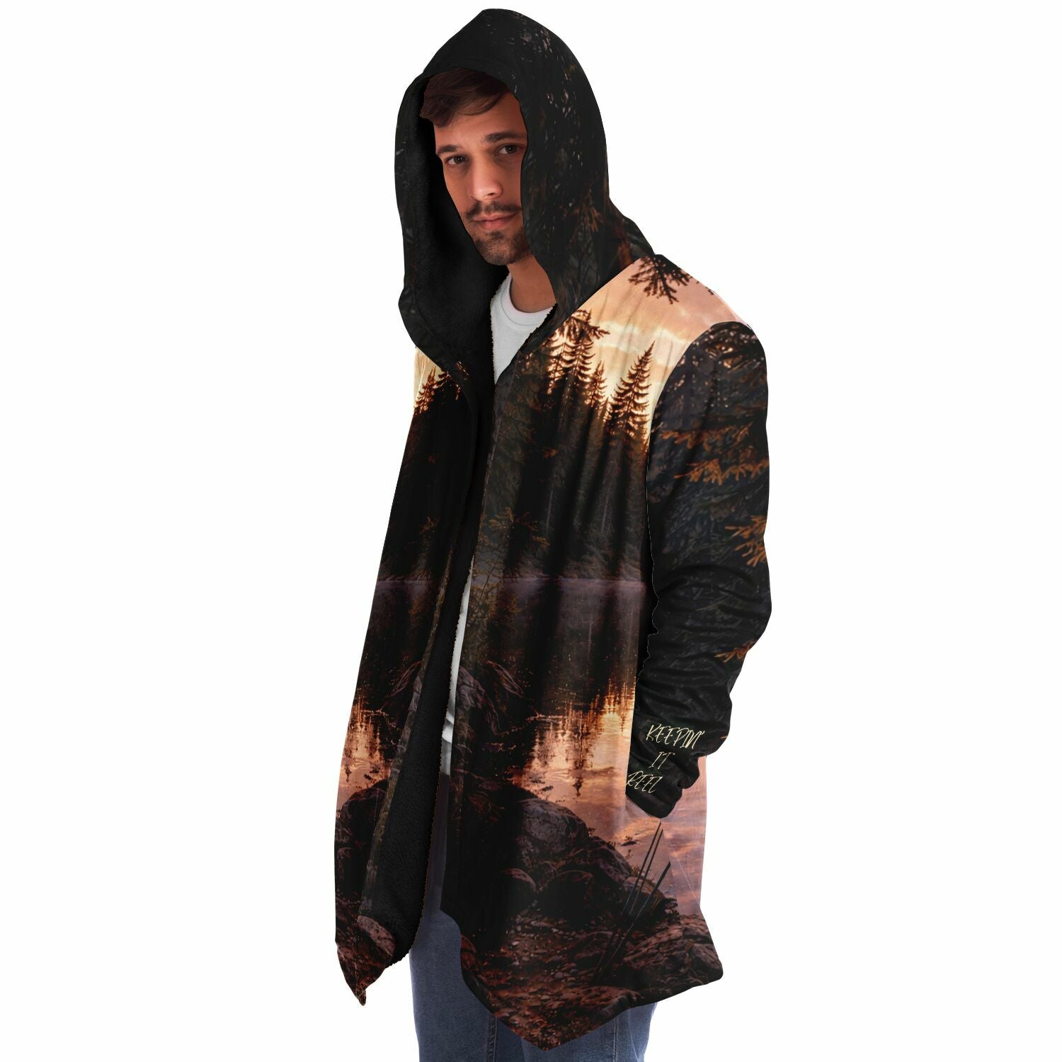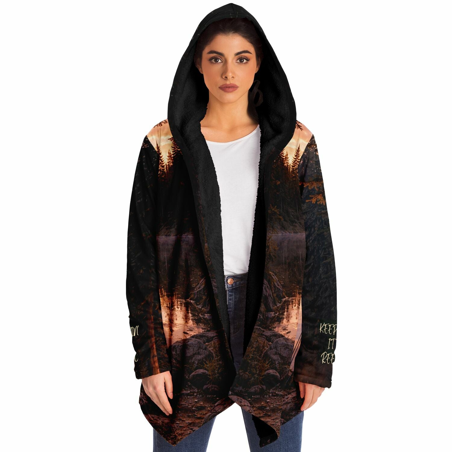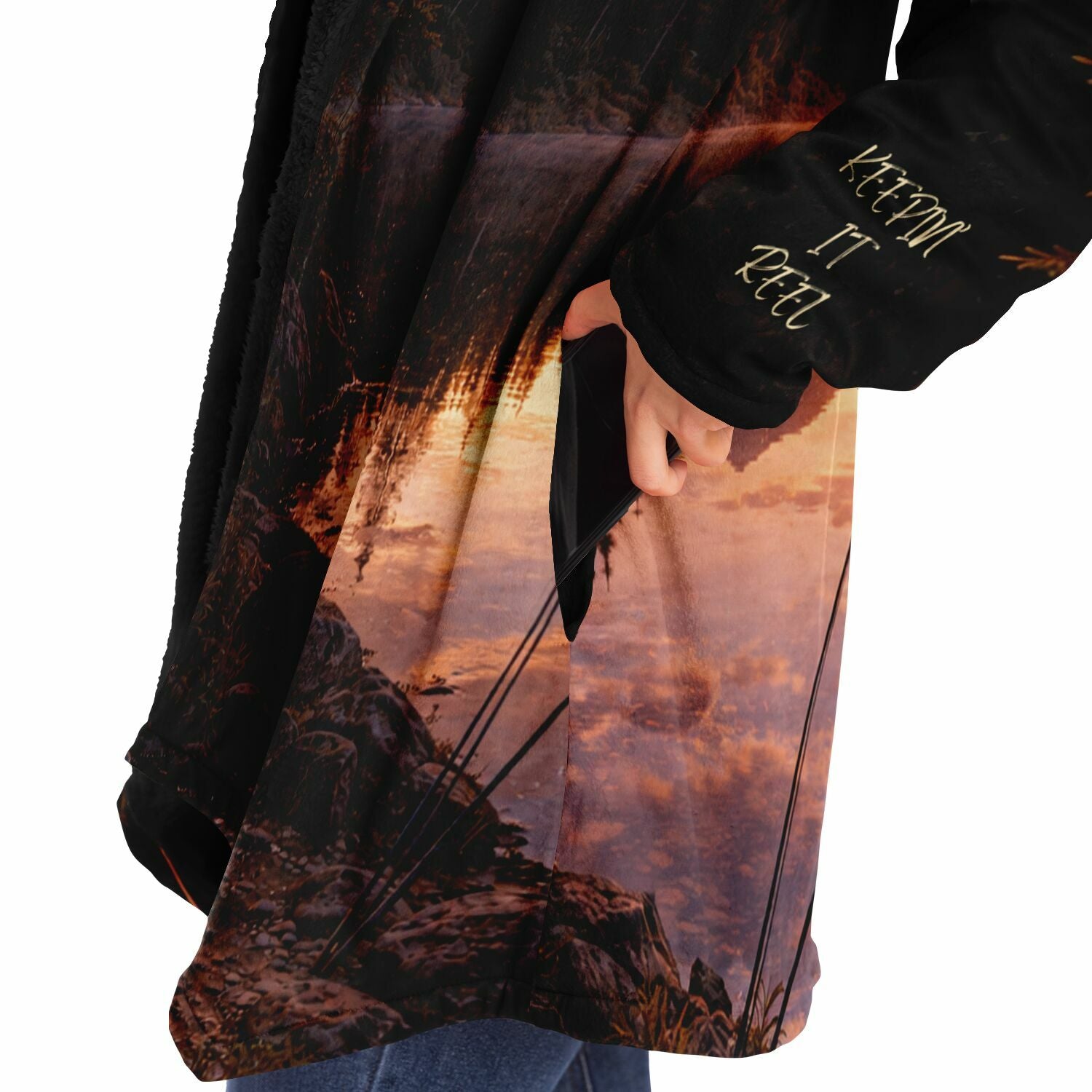This luxurious cloak is made from an ultra-soft premium microfiber fleece lining. The outside is made with a micro-mink polyester fabric that allows the print to be high definition with vibrant colors. Featuring two deep side pockets to keep your belongings safe and your hands warm.