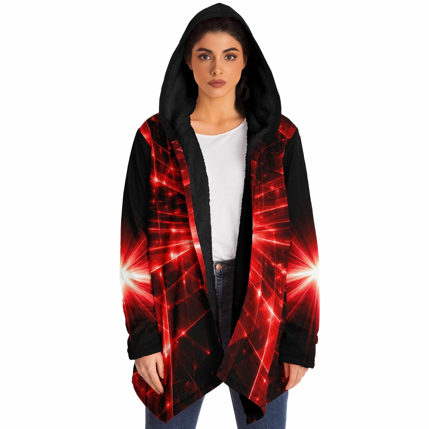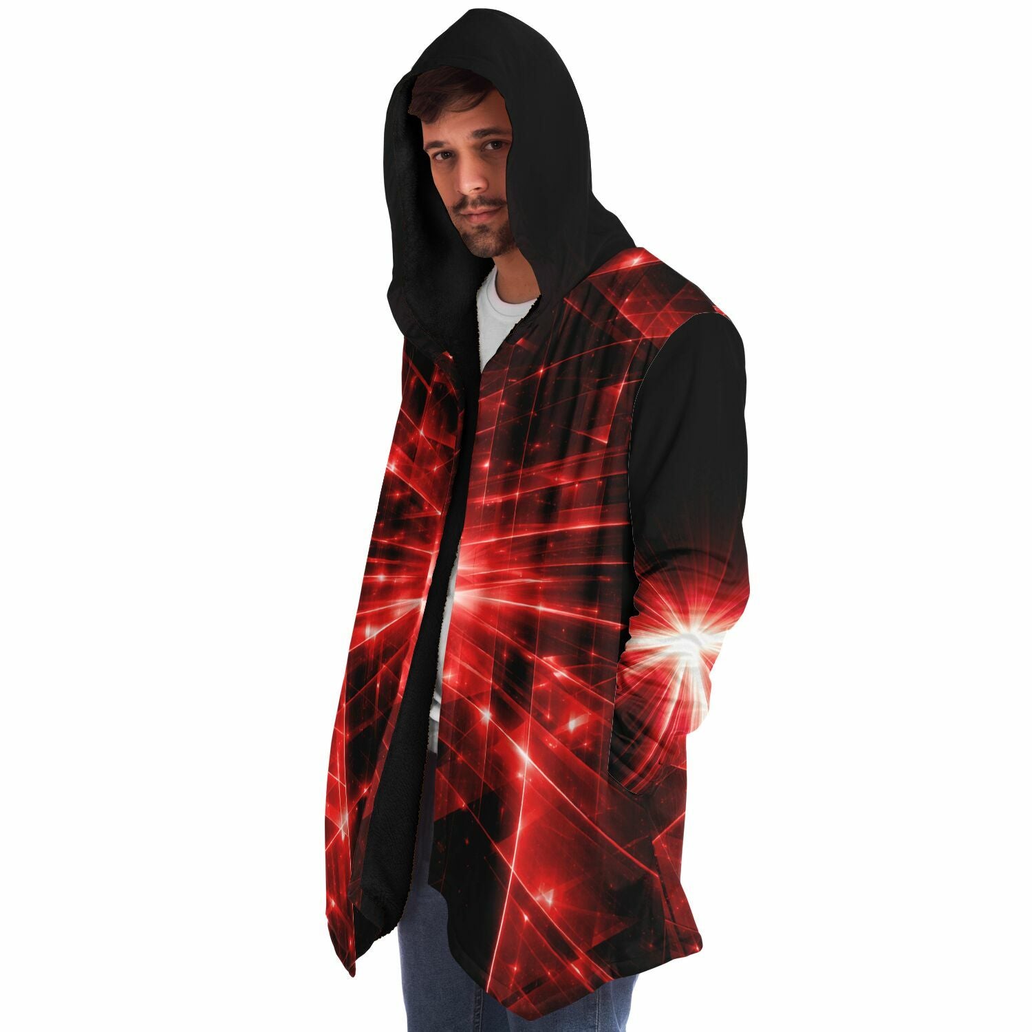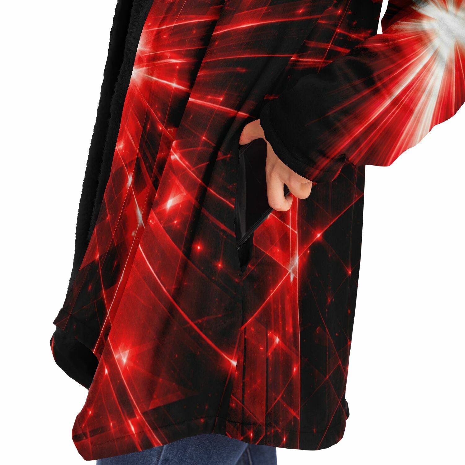This luxurious cloak is made from an ultra-soft premium microfiber fleece lining. The outside is made with a micro-mink polyester fabric that allows the print to be high definition with vibrant colors. Featuring two deep side pockets to keep your belongings safe and your hands warm.
