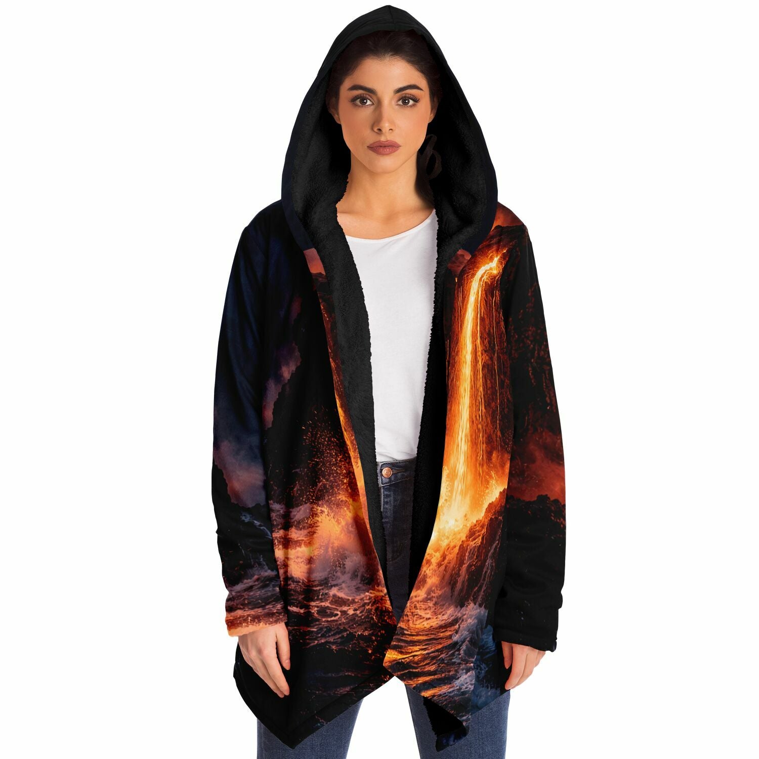 This luxurious cloak is made from an ultra-soft premium microfiber fleece lining. The outside is made with a micro-mink polyester fabric that allows the print to be high definition with vibrant colors. Featuring two deep side pockets to keep your belongings safe and your hands warm.