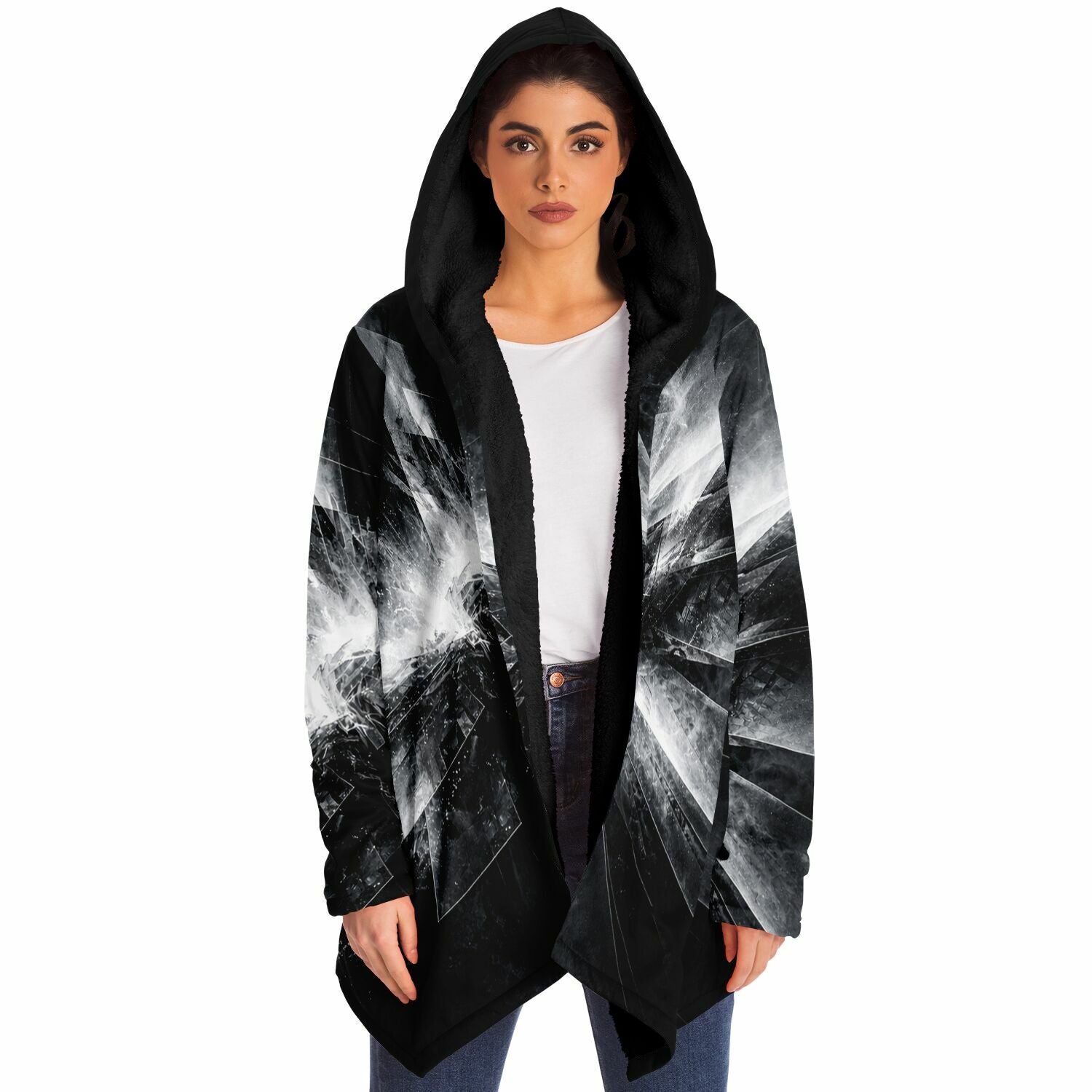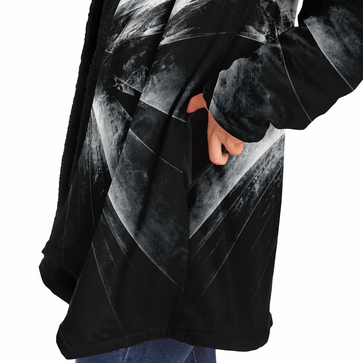 This luxurious cloak is made from an ultra-soft premium microfiber fleece lining. The outside is made with a micro-mink polyester fabric that allows the print to be high definition with vibrant colors. Featuring two deep side pockets to keep your belongings safe and your hands warm.