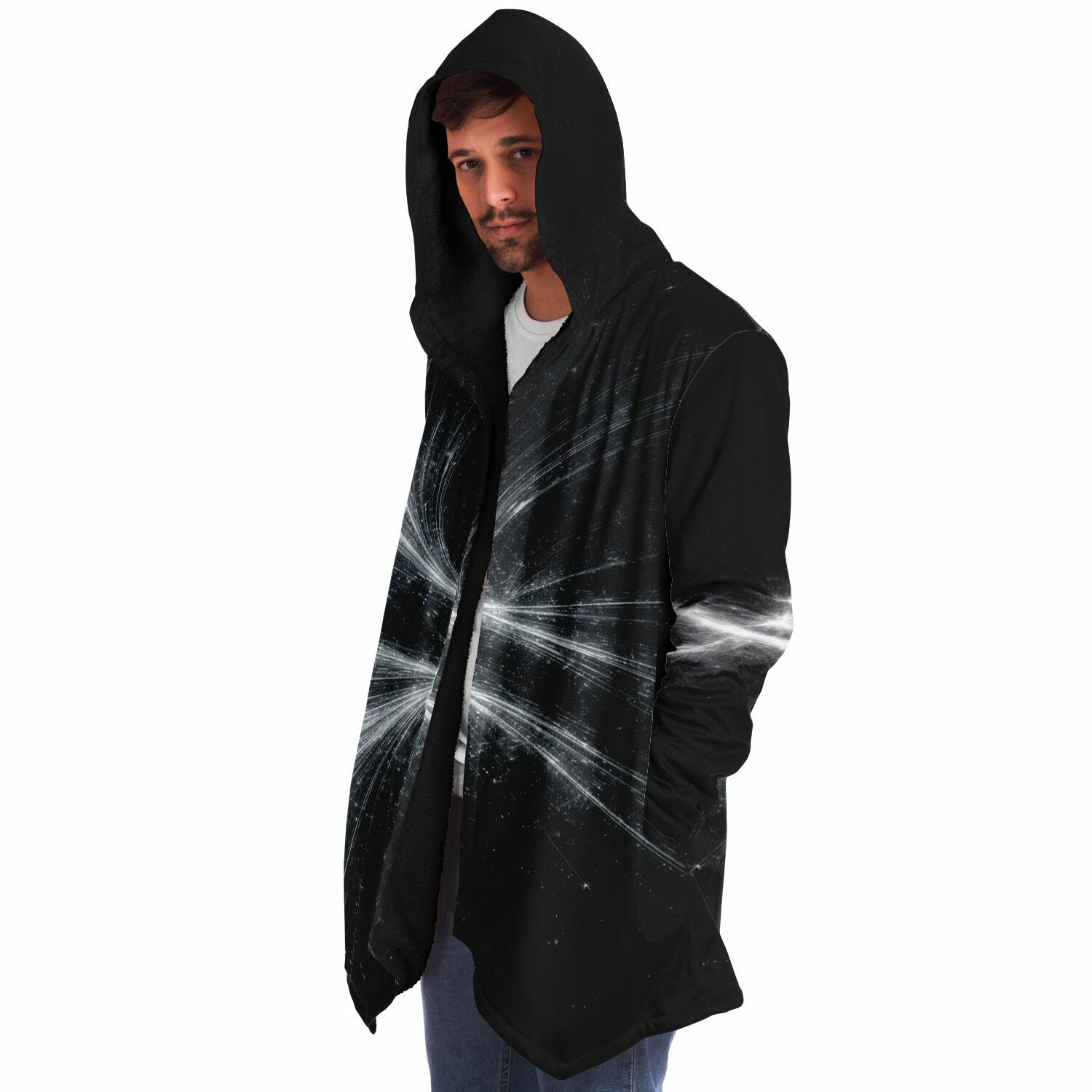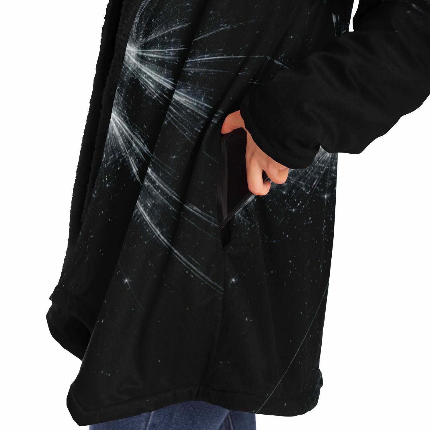 This luxurious cloak is made from an ultra-soft premium microfiber fleece lining. The outside is made with a micro-mink polyester fabric that allows the print to be high definition with vibrant colors. Featuring two deep side pockets to keep your belongings safe and your hands warm.