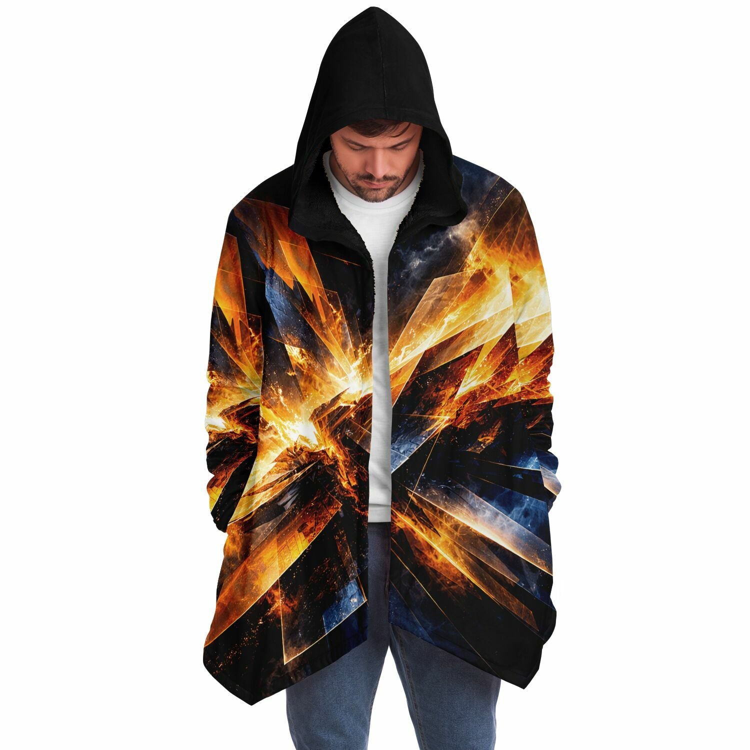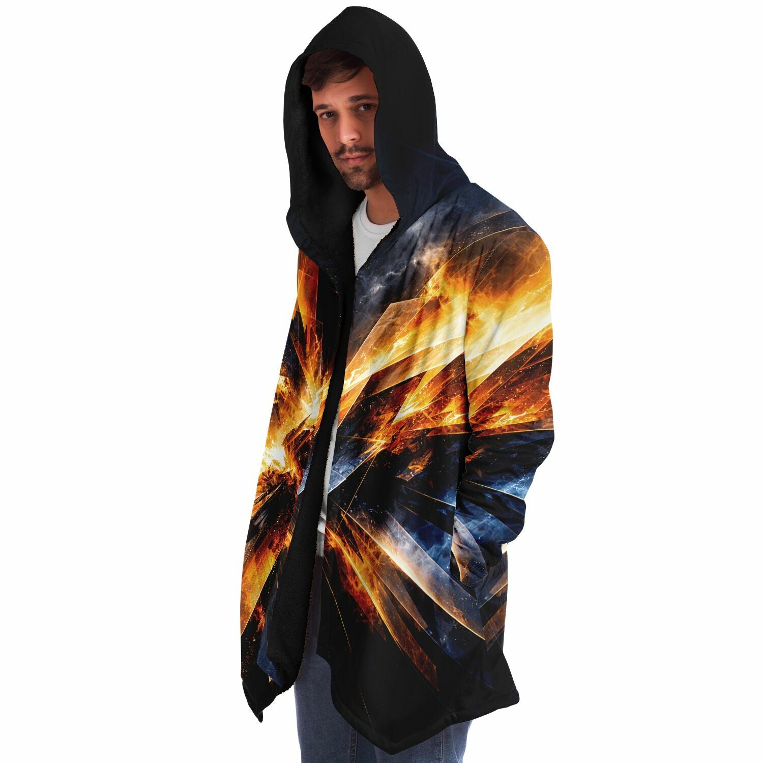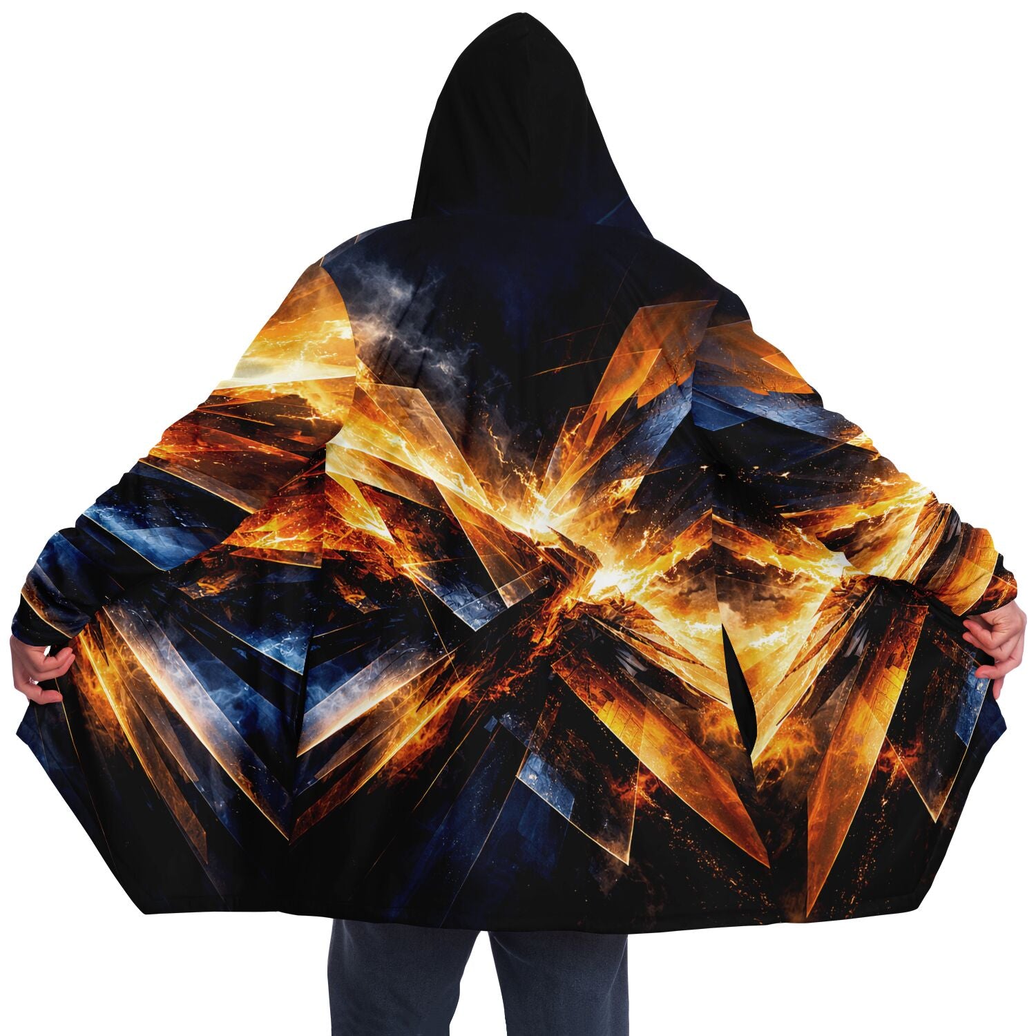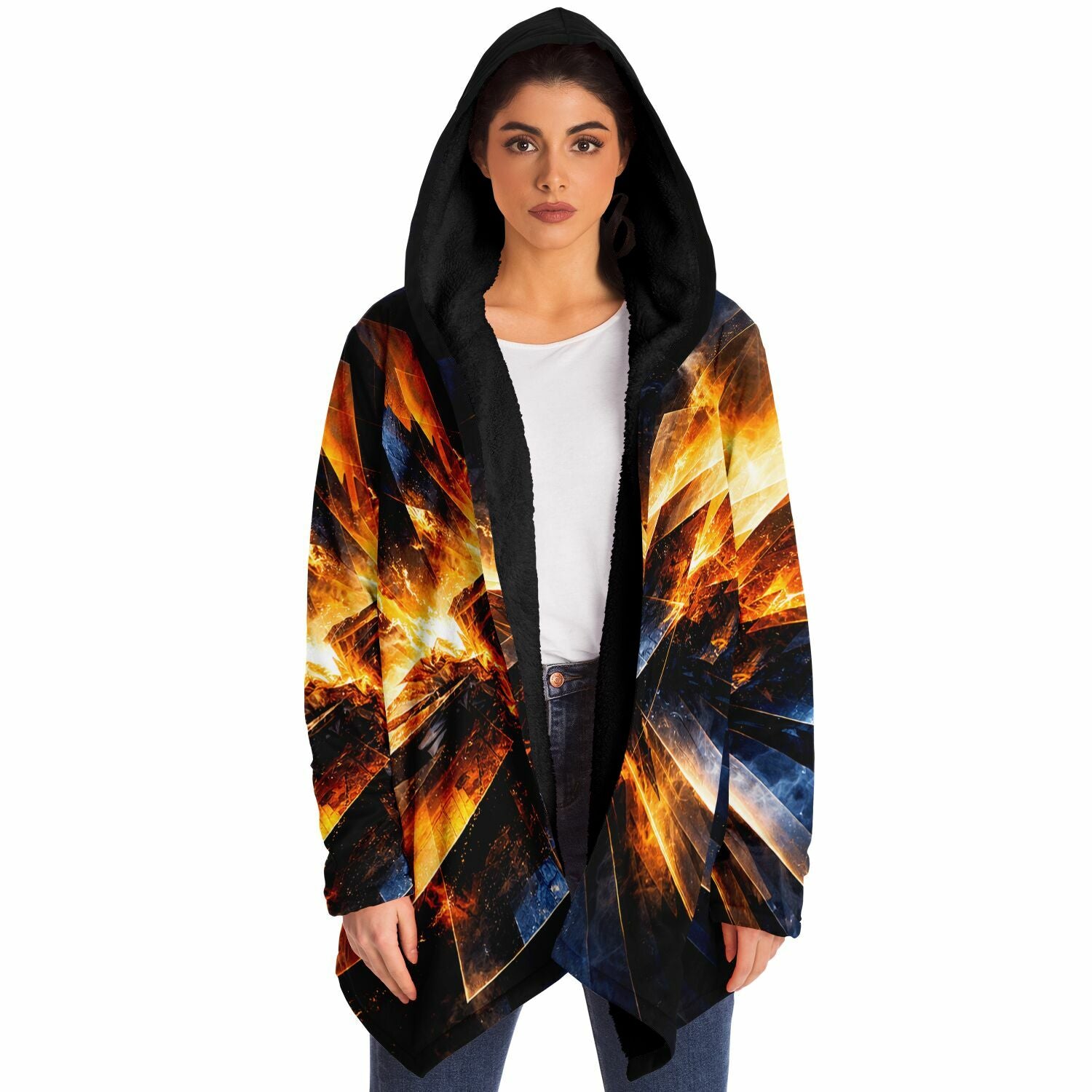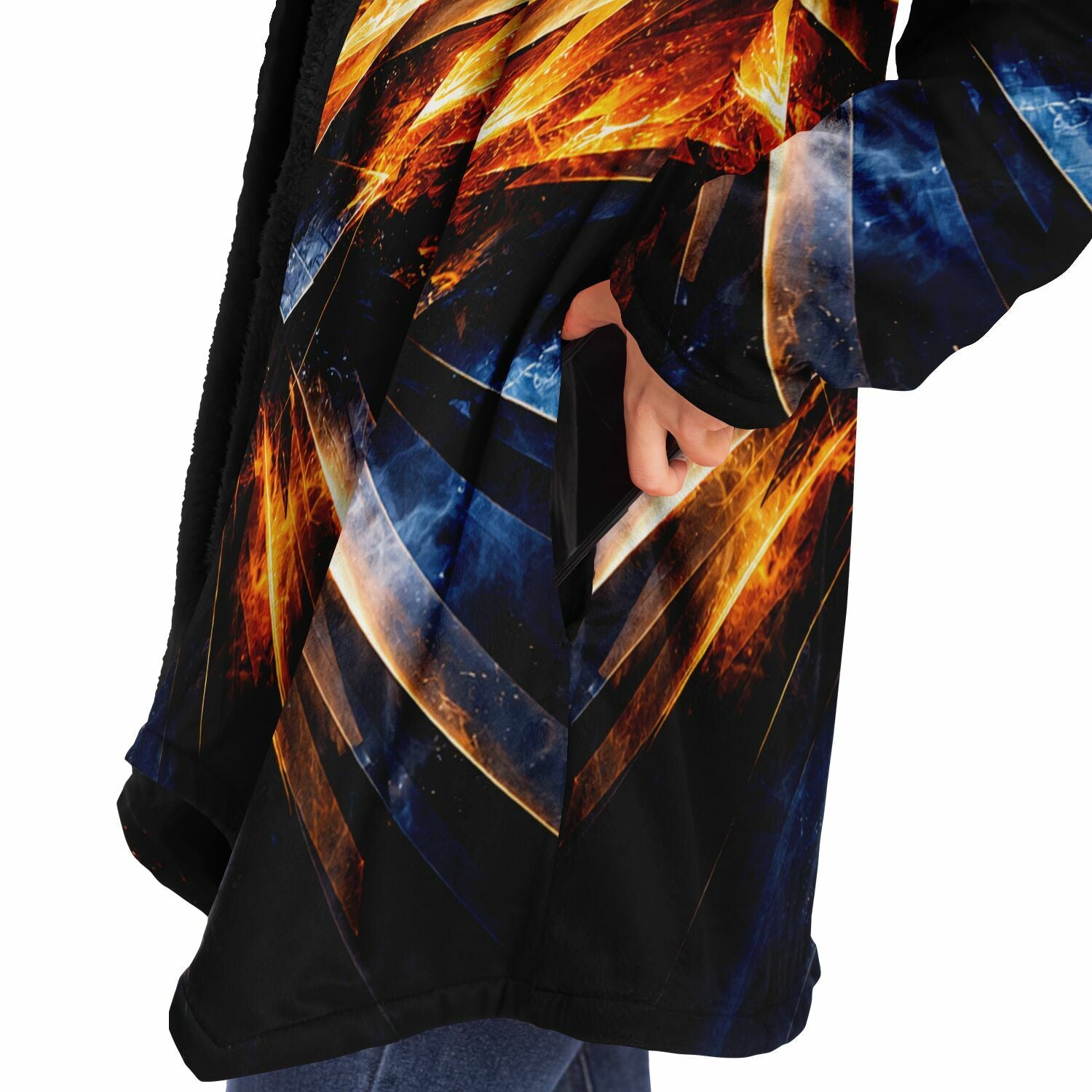 This luxurious cloak is made from an ultra-soft premium microfiber fleece lining. The outside is made with a micro-mink polyester fabric that allows the print to be high definition with vibrant colors. Featuring two deep side pockets to keep your belongings safe and your hands warm.
