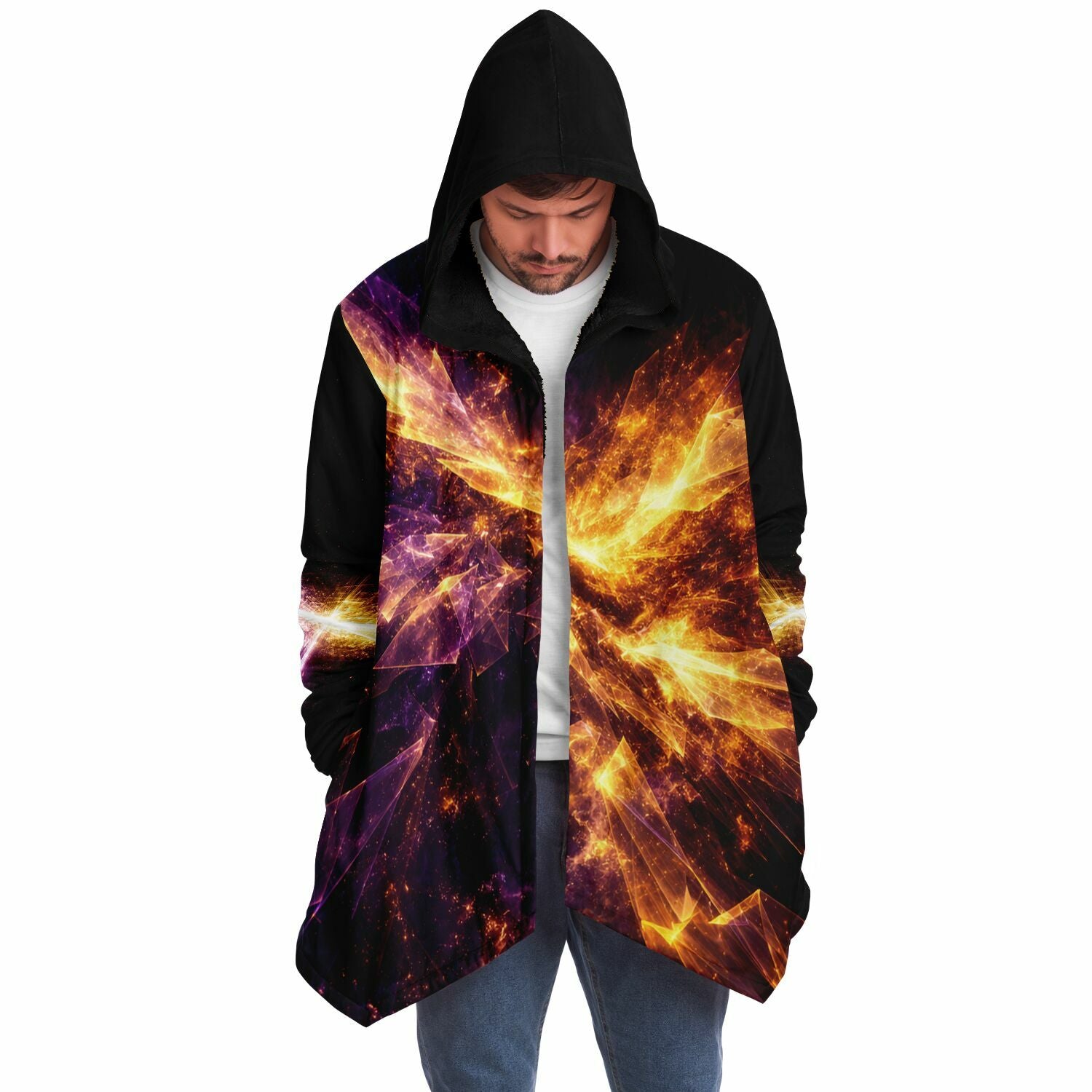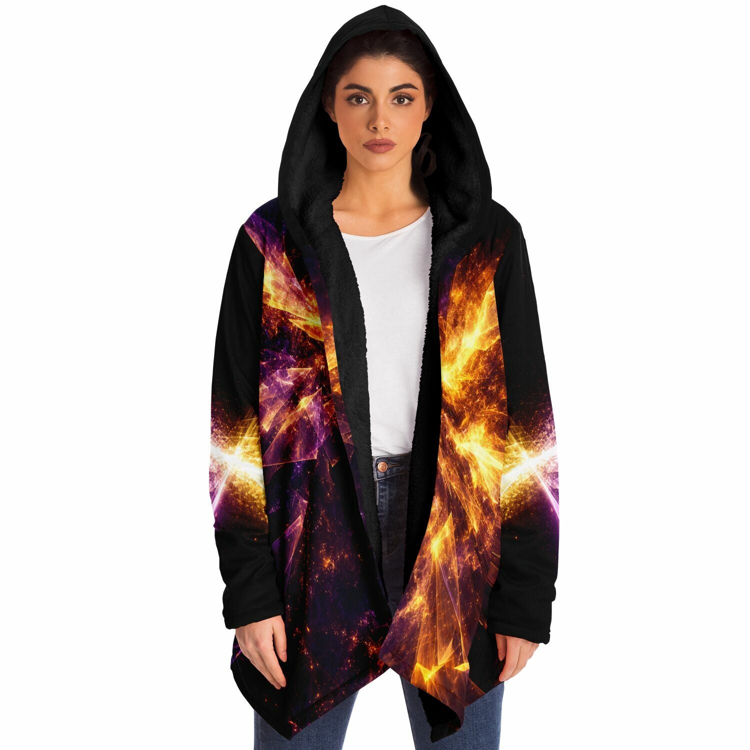 This luxurious cloak is made from an ultra-soft premium microfiber fleece lining. The outside is made with a micro-mink polyester fabric that allows the print to be high definition with vibrant colors. Featuring two deep side pockets to keep your belongings safe and your hands warm.