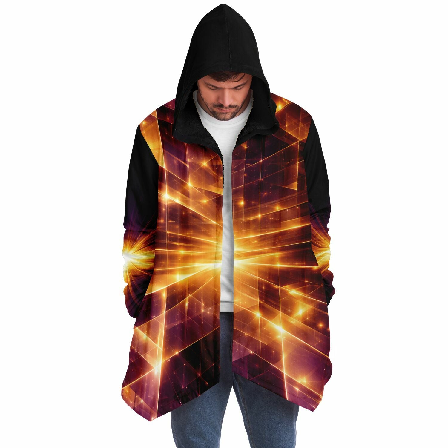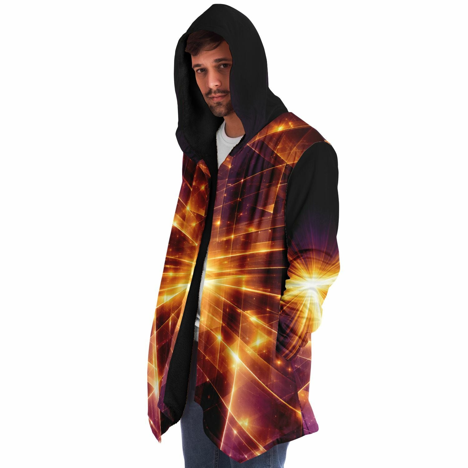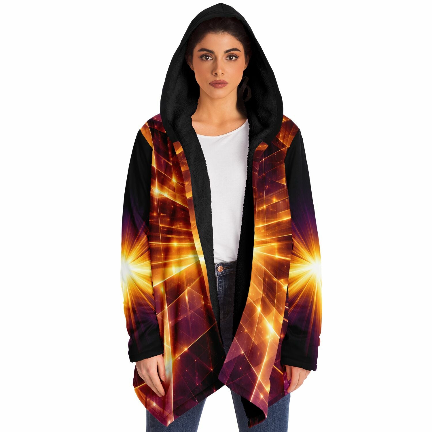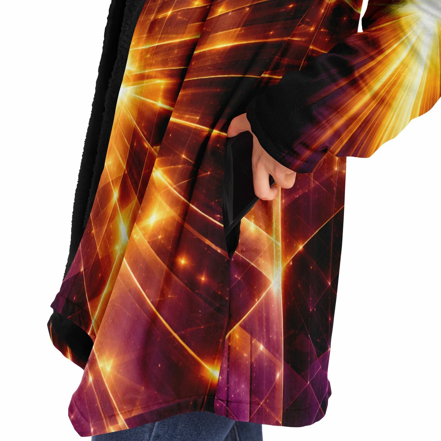 This luxurious cloak is made from an ultra-soft premium microfiber fleece lining. The outside is made with a micro-mink polyester fabric that allows the print to be high definition with vibrant colors. Featuring two deep side pockets to keep your belongings safe and your hands warm.