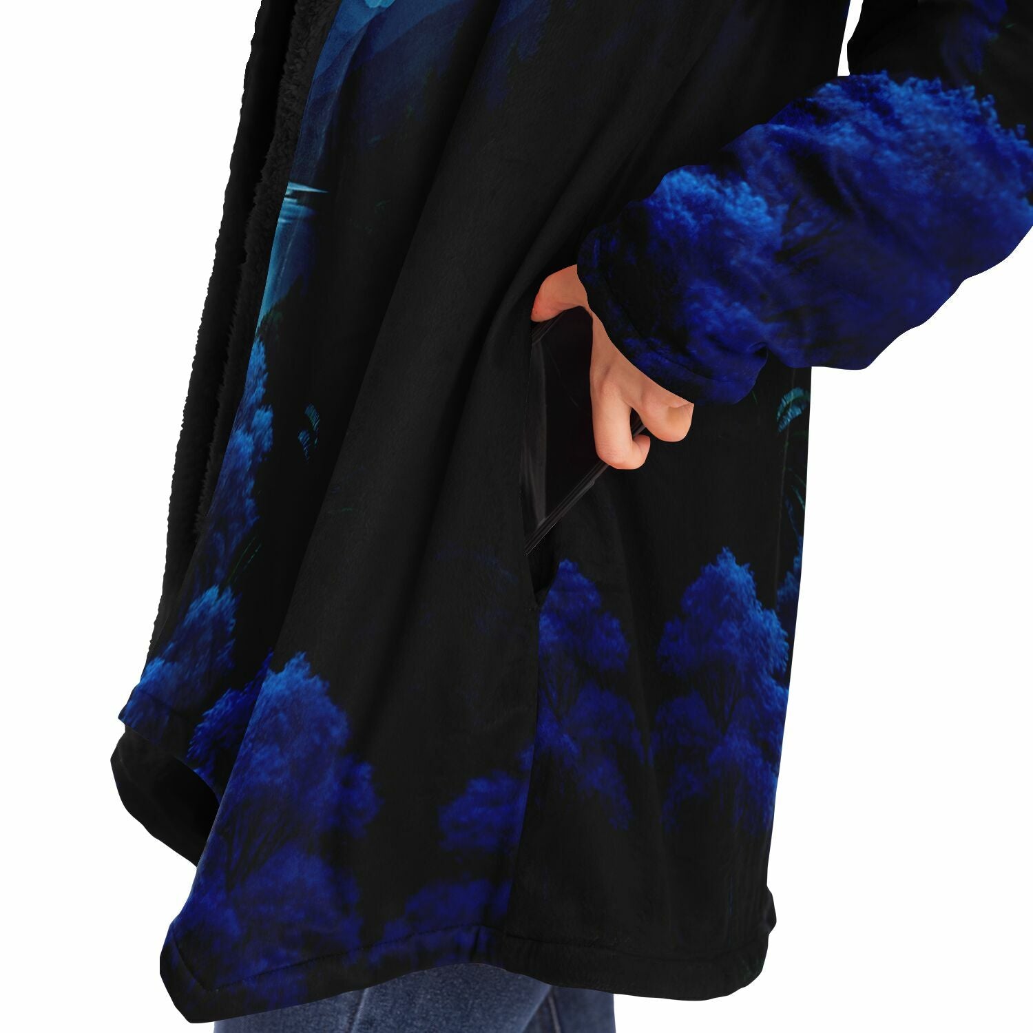 This luxurious cloak is made from an ultra-soft premium microfiber fleece lining. The outside is made with a micro-mink polyester fabric that allows the print to be high definition with vibrant colors. Featuring two deep side pockets to keep your belongings safe and your hands warm.