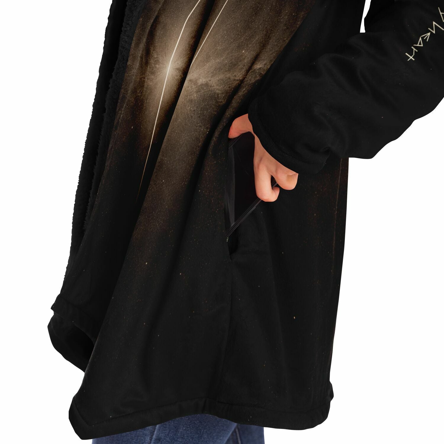 This luxurious cloak is made from an ultra-soft premium microfiber fleece lining. The outside is made with a micro-mink polyester fabric that allows the print to be high definition with vibrant colors. Featuring two deep side pockets to keep your belongings safe and your hands warm.