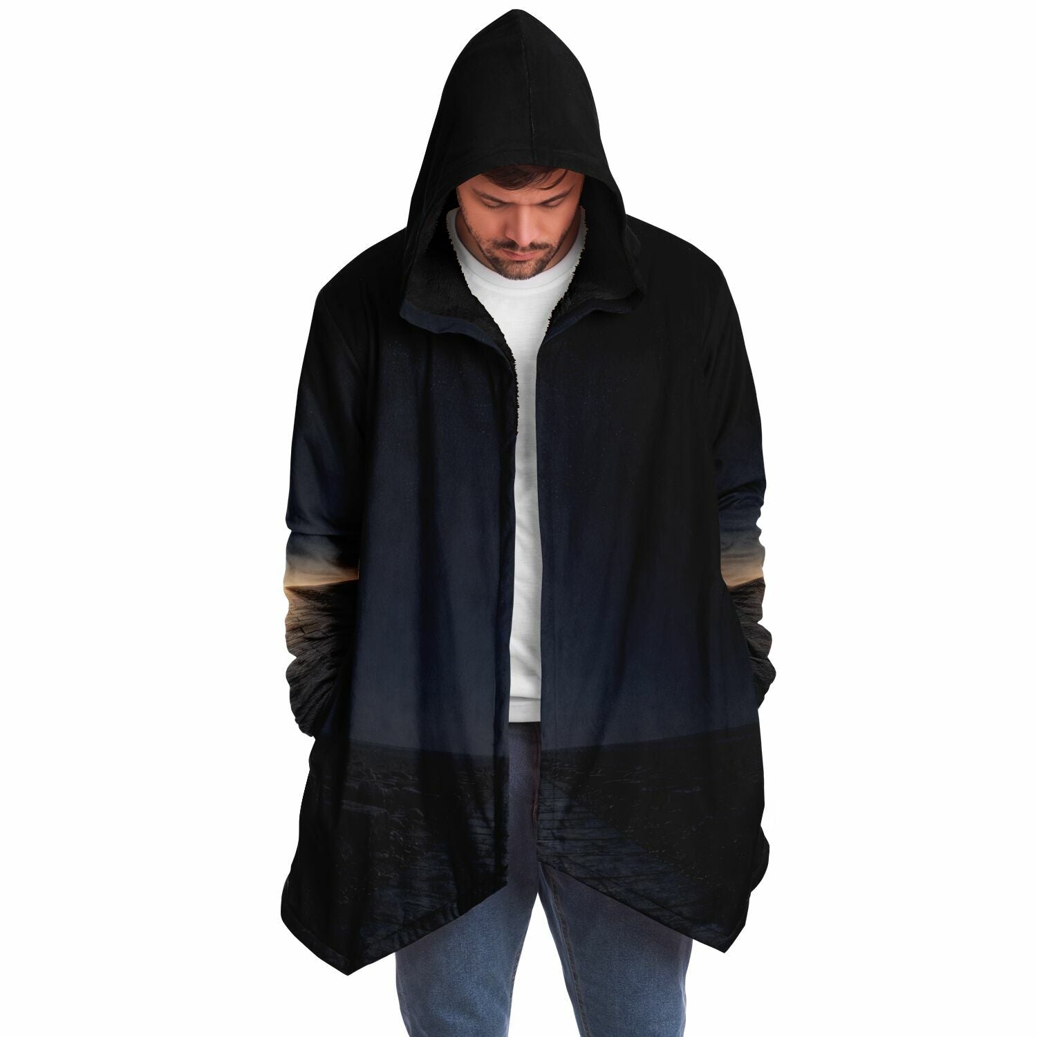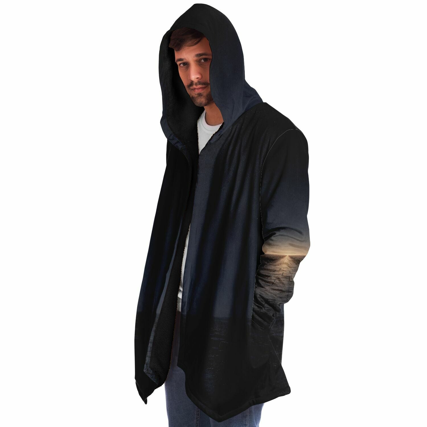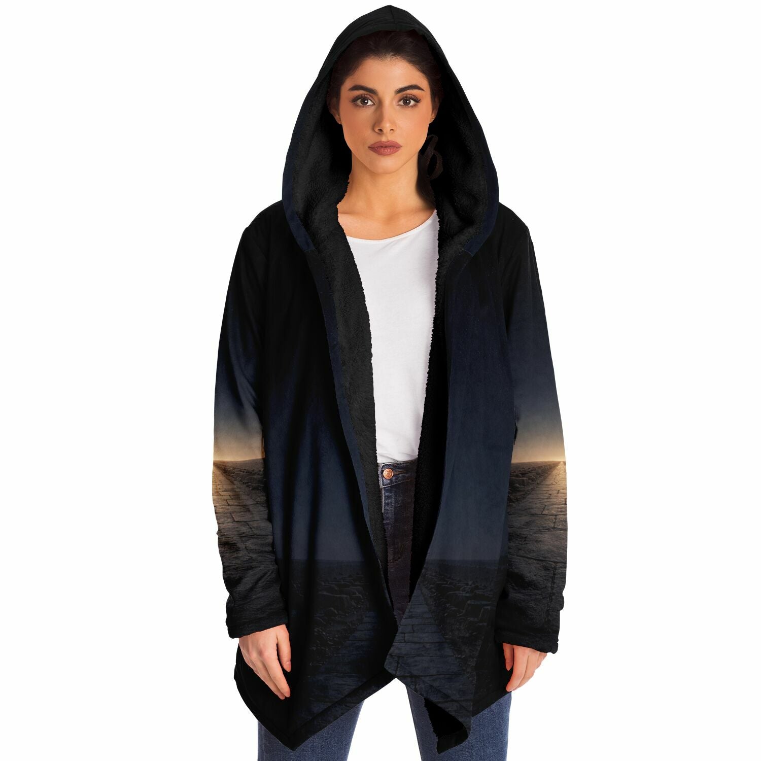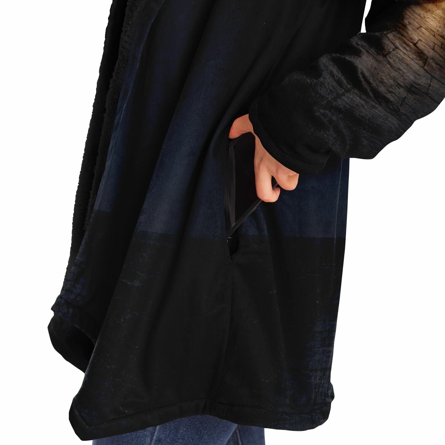 This luxurious cloak is made from an ultra-soft premium microfiber fleece lining. The outside is made with a micro-mink polyester fabric that allows the print to be high definition with vibrant colors. Featuring two deep side pockets to keep your belongings safe and your hands warm.