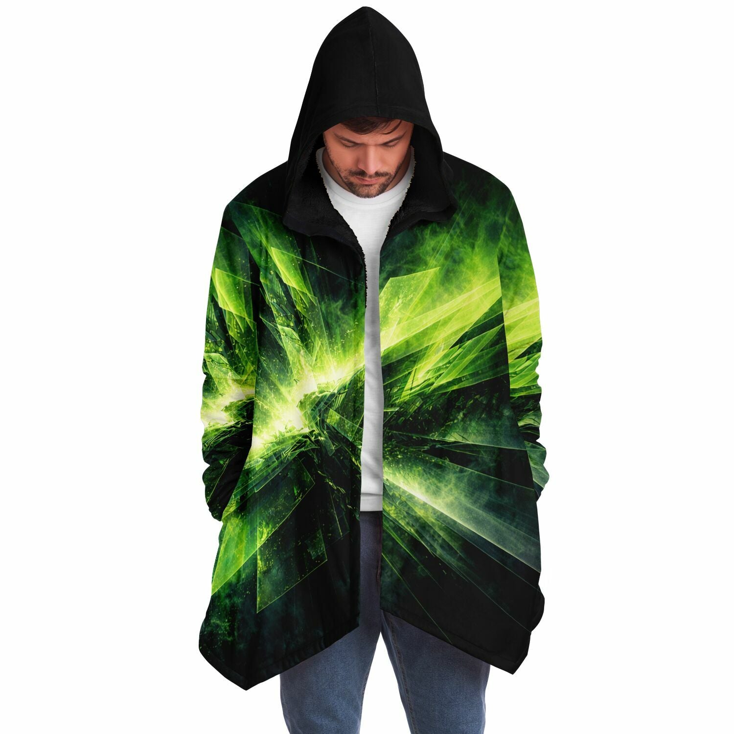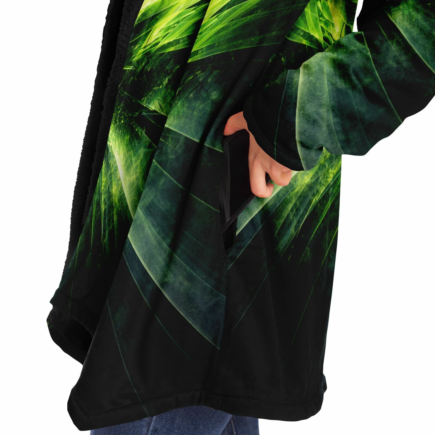 This luxurious cloak is made from an ultra-soft premium microfiber fleece lining. The outside is made with a micro-mink polyester fabric that allows the print to be high definition with vibrant colors. Featuring two deep side pockets to keep your belongings safe and your hands warm.
