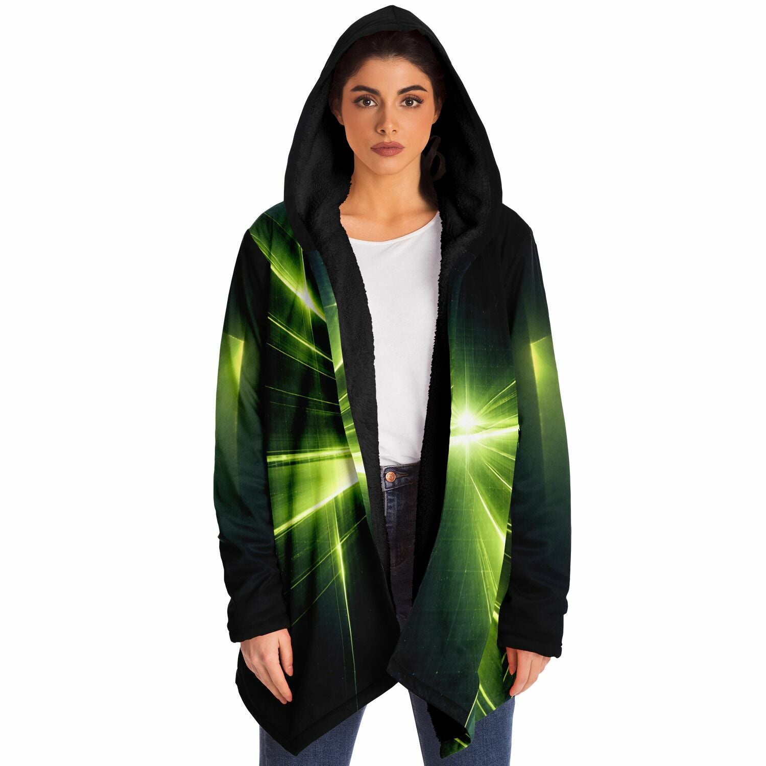 This luxurious cloak is made from an ultra-soft premium microfiber fleece lining. The outside is made with a micro-mink polyester fabric that allows the print to be high definition with vibrant colors. Featuring two deep side pockets to keep your belongings safe and your hands warm.