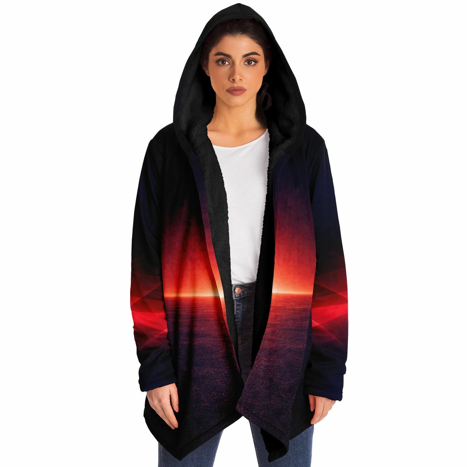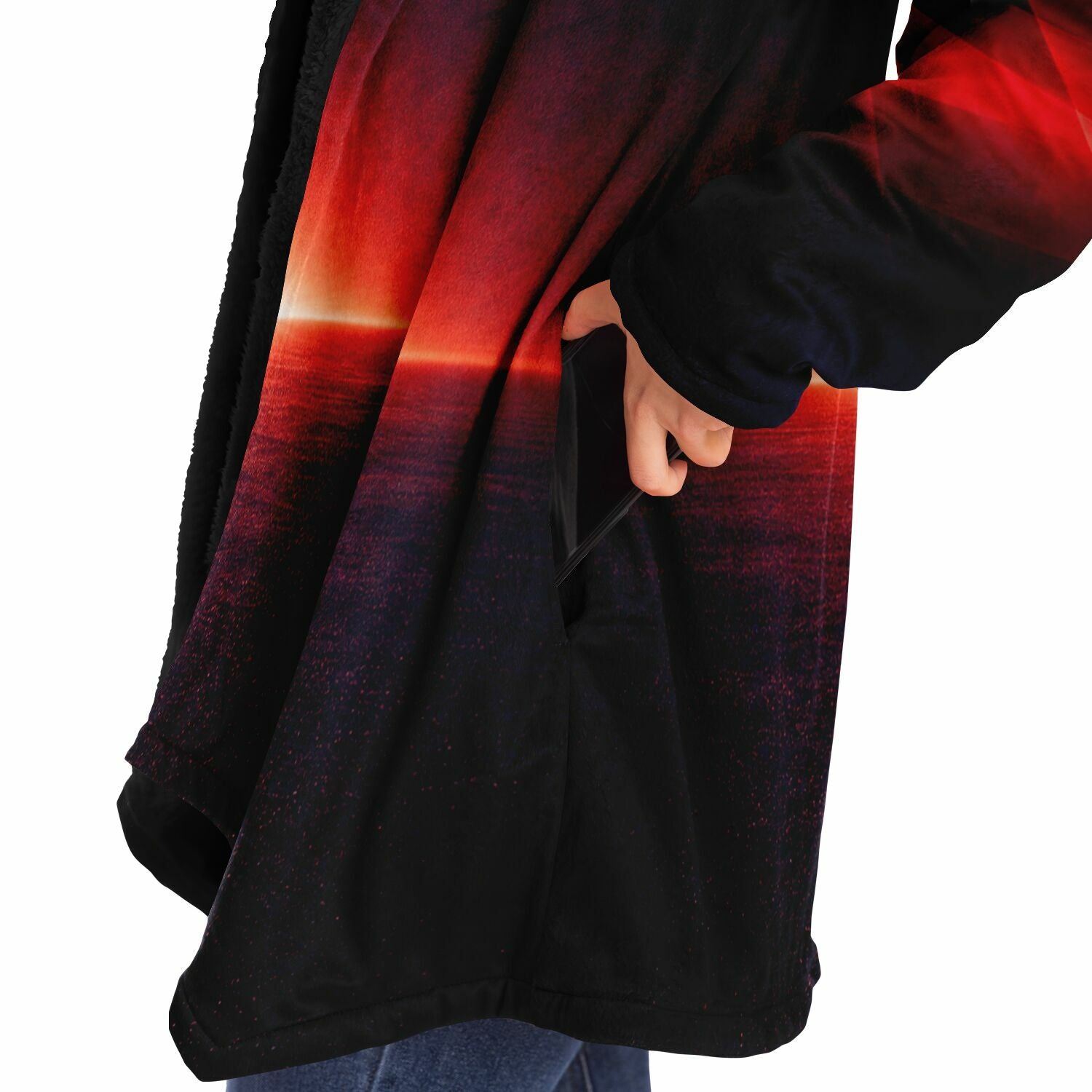 This luxurious cloak is made from an ultra-soft premium microfiber fleece lining. The outside is made with a micro-mink polyester fabric that allows the print to be high definition with vibrant colors. Featuring two deep side pockets to keep your belongings safe and your hands warm.