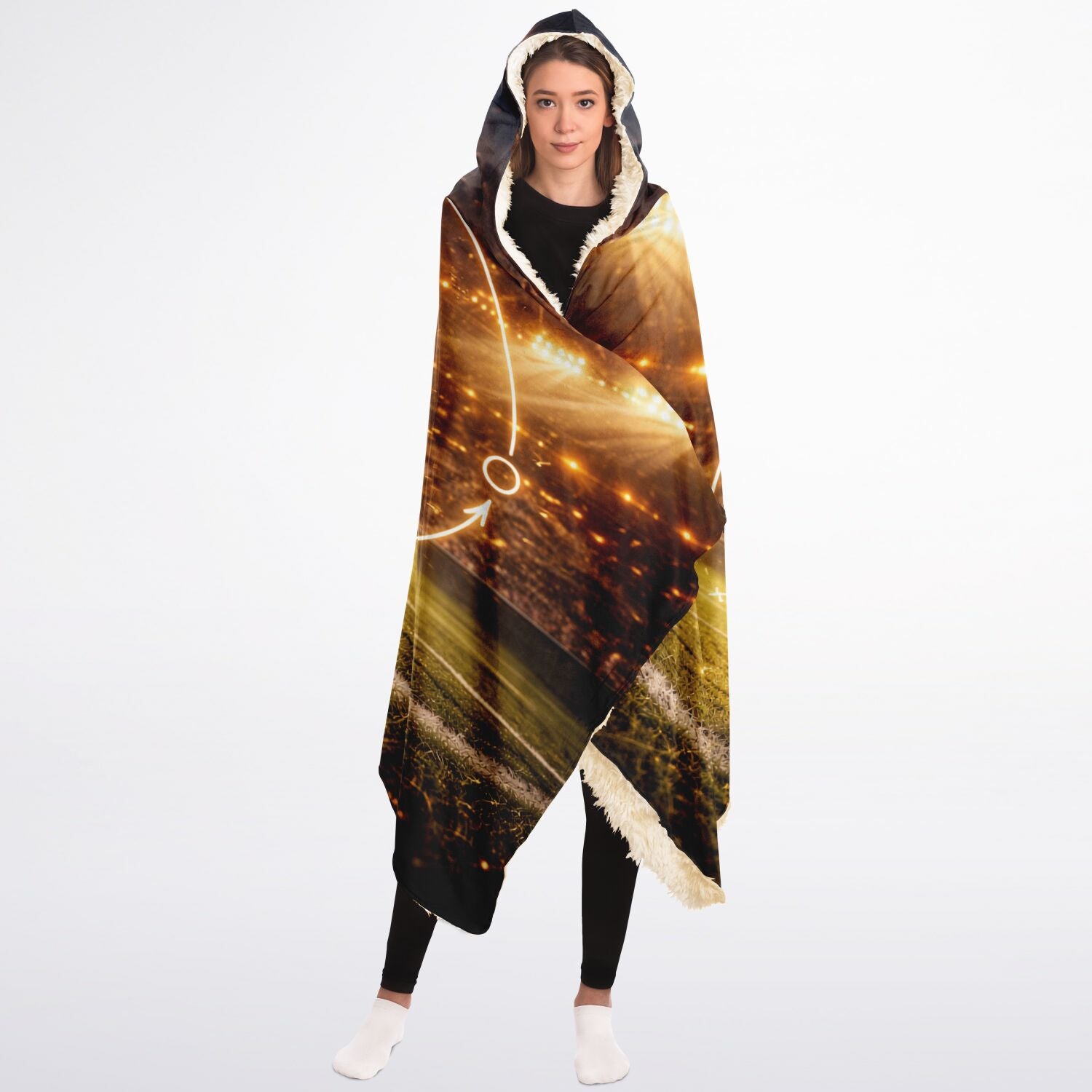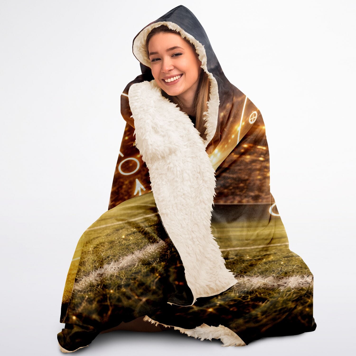 This Hooded Sherpa Blanket is crafted from an outer silky smooth micro-mink polyester face and includes a premium plush 100% polyester sherpa lining. Each hooded blanket is individually printed, cut, and sewn to ensure a flawless graphic with no imperfections.