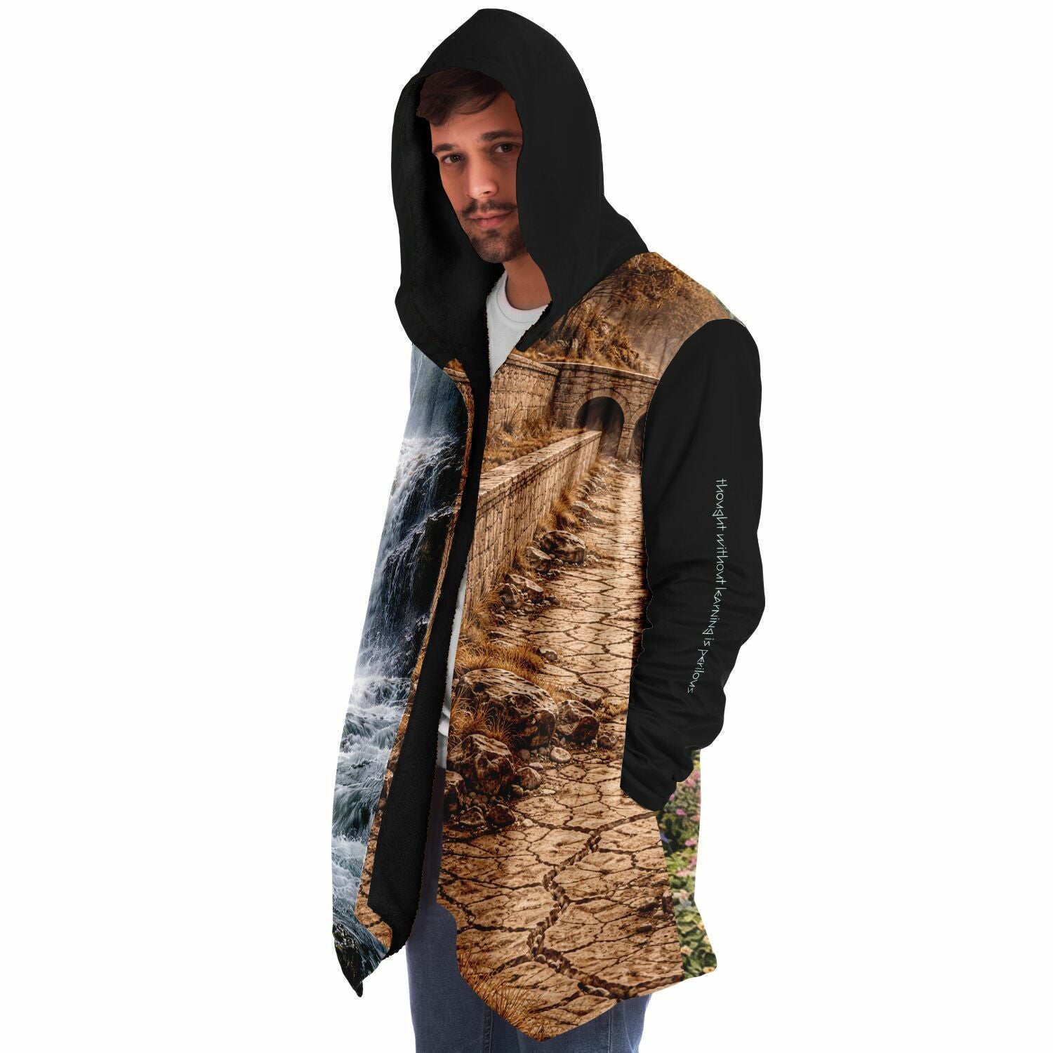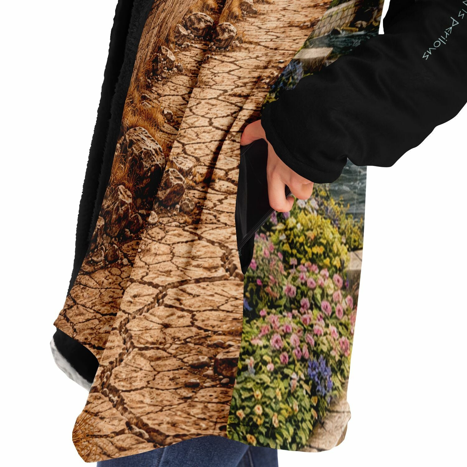 This luxurious cloak is made from an ultra-soft premium microfiber fleece lining. The outside is made with a micro-mink polyester fabric that allows the print to be high definition with vibrant colors. Featuring two deep side pockets to keep your belongings safe and your hands warm.