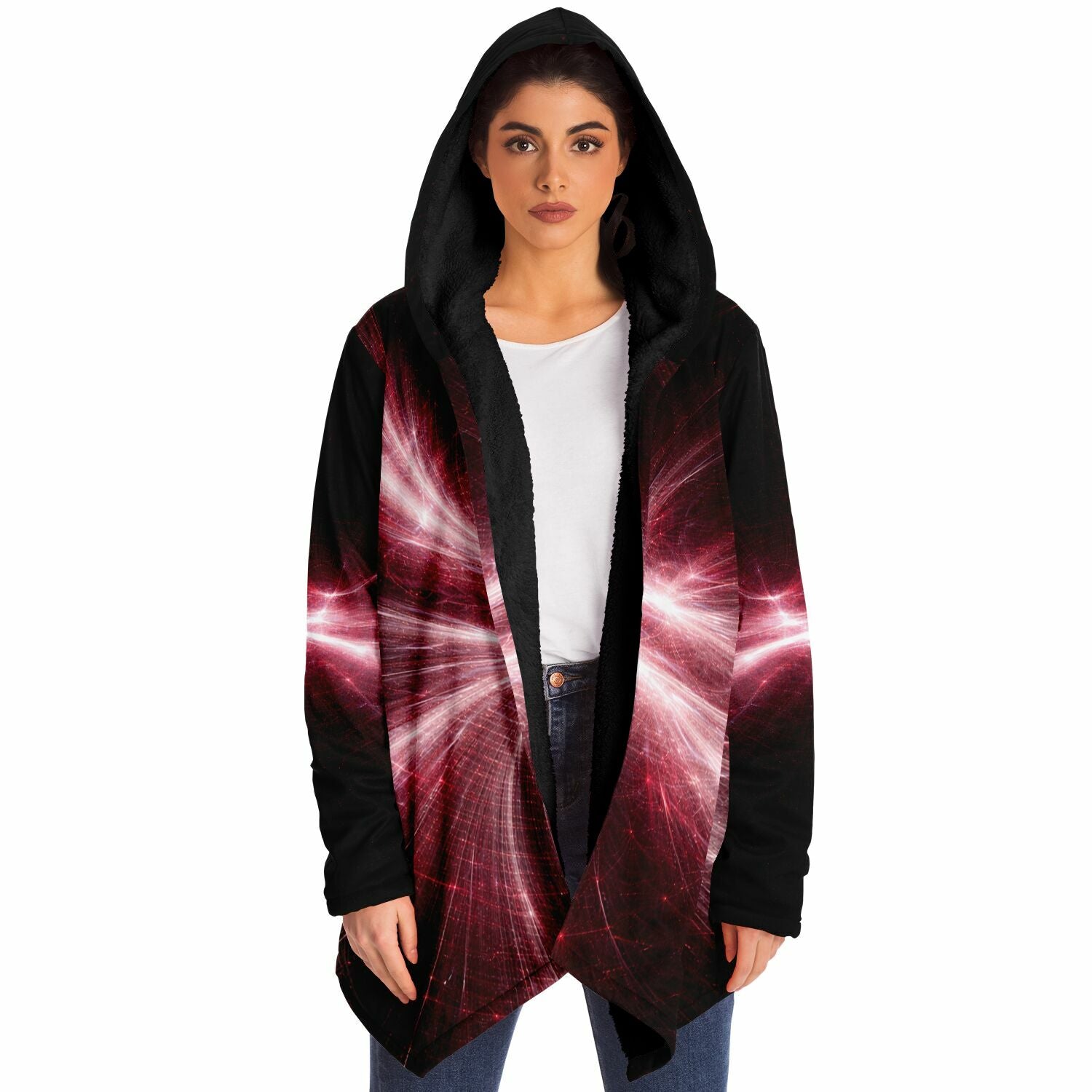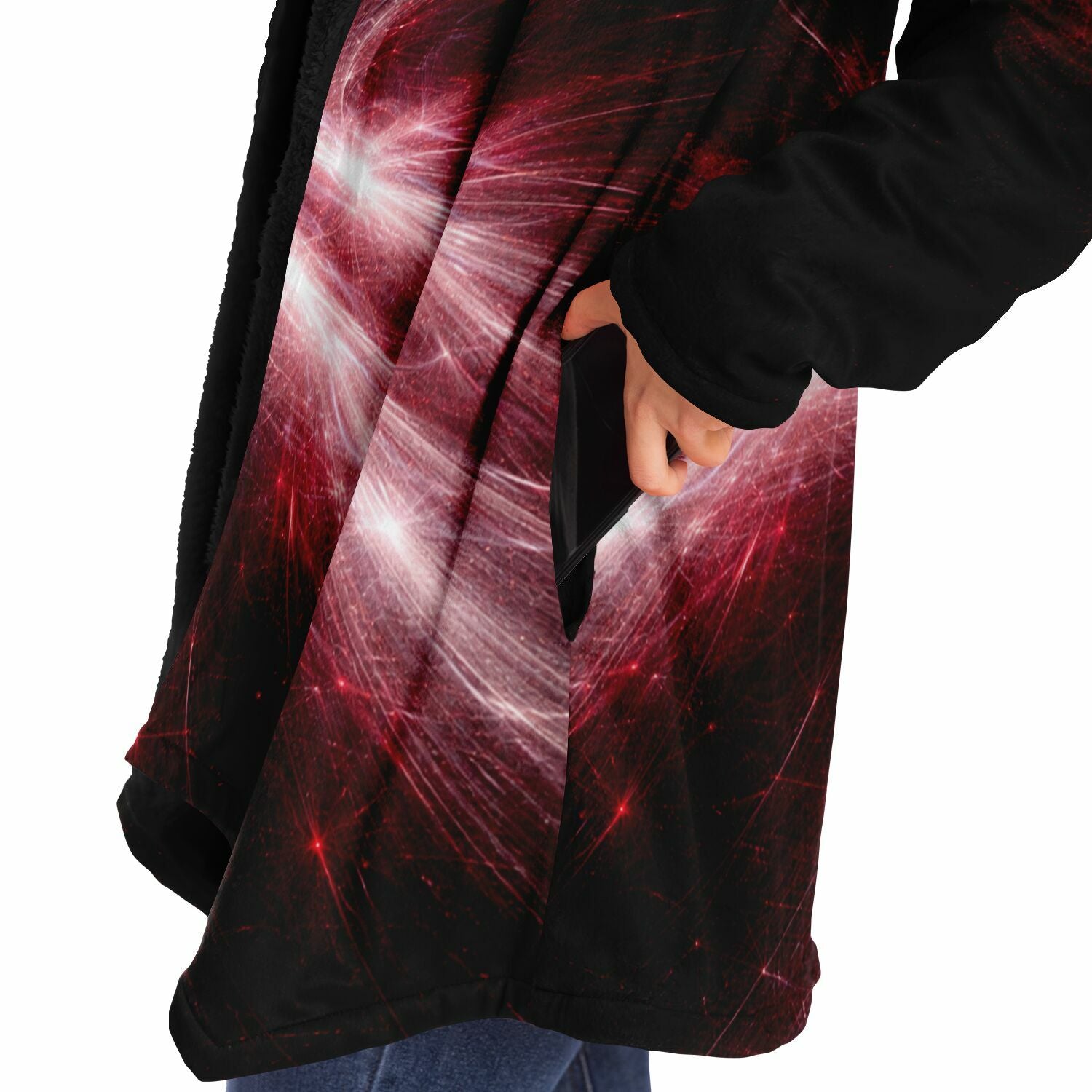 This luxurious cloak is made from an ultra-soft premium microfiber fleece lining. The outside is made with a micro-mink polyester fabric that allows the print to be high definition with vibrant colors. Featuring two deep side pockets to keep your belongings safe and your hands warm.