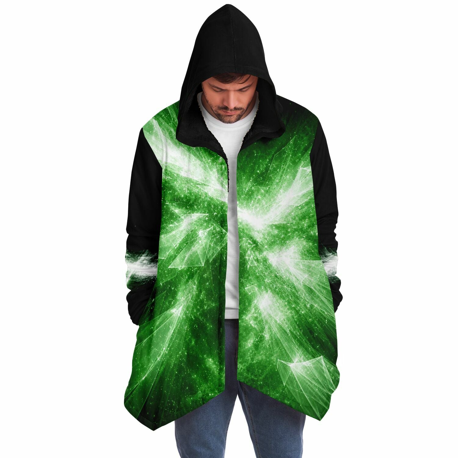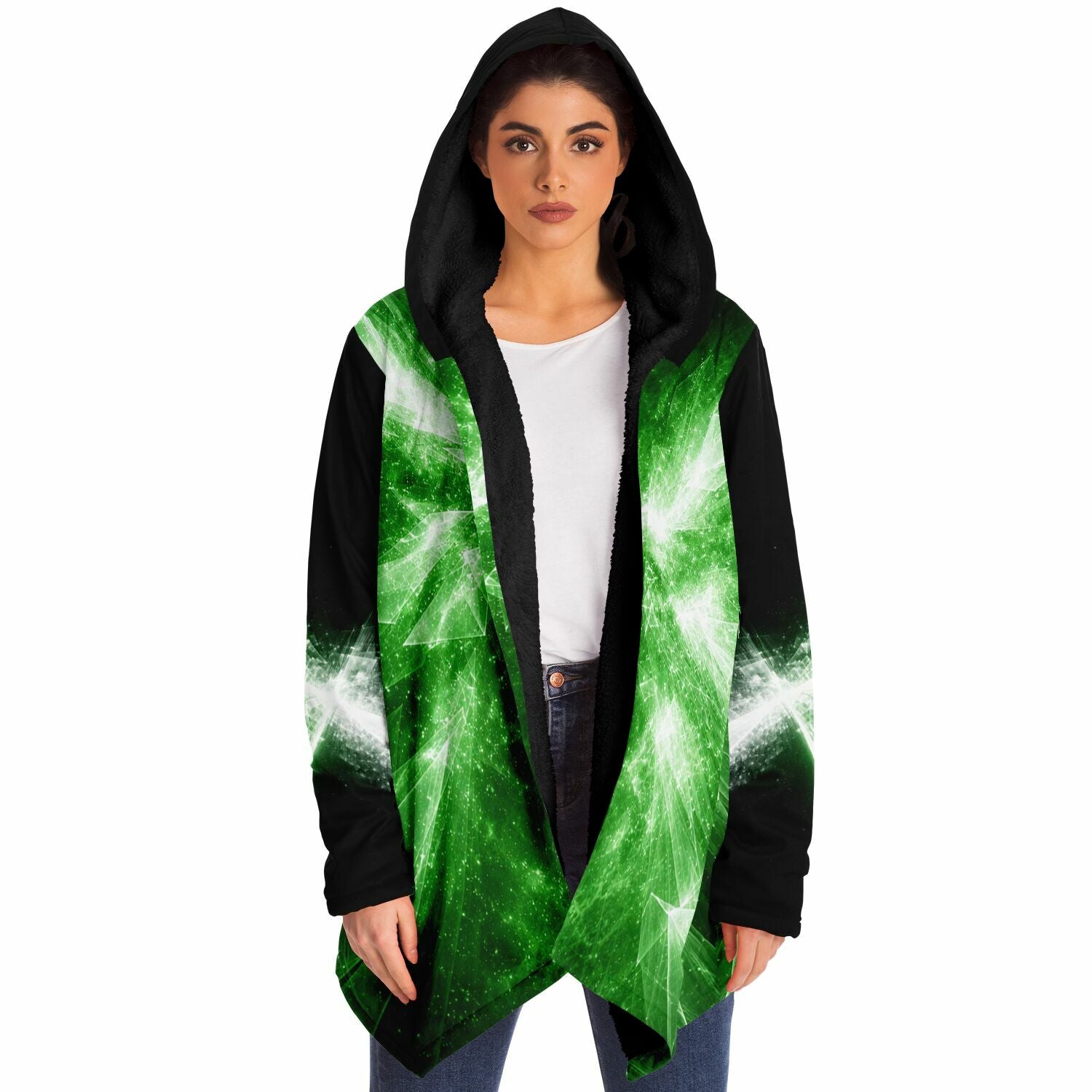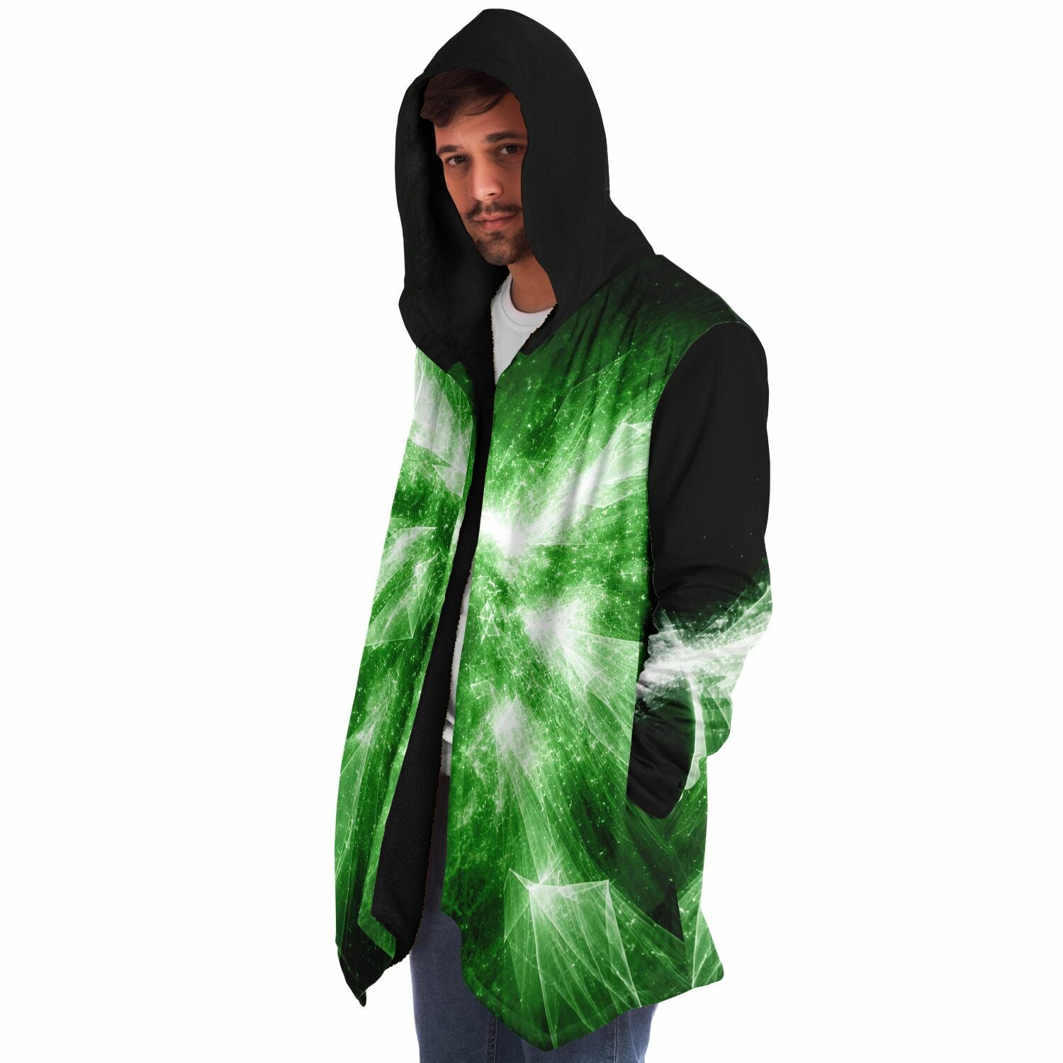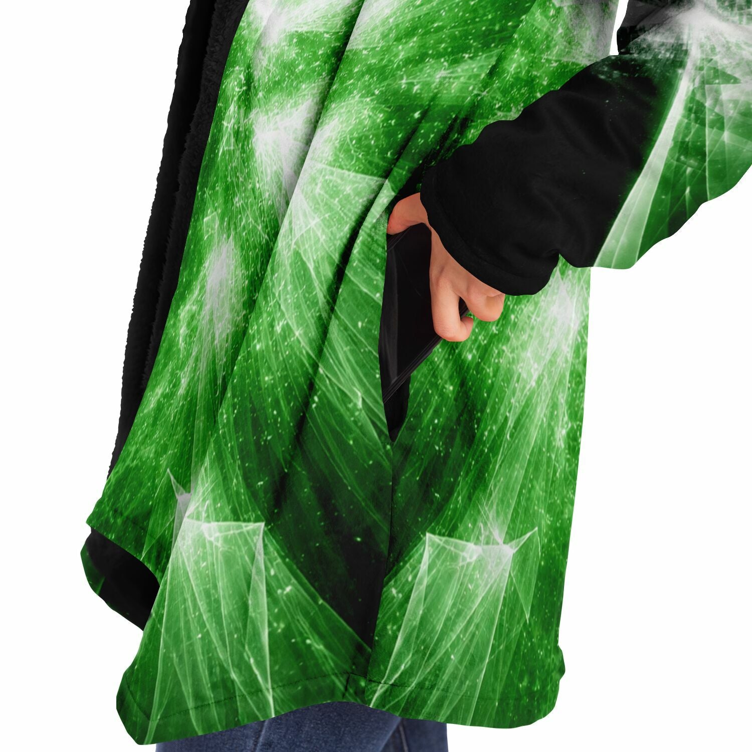 This luxurious cloak is made from an ultra-soft premium microfiber fleece lining. The outside is made with a micro-mink polyester fabric that allows the print to be high definition with vibrant colors. Featuring two deep side pockets to keep your belongings safe and your hands warm.