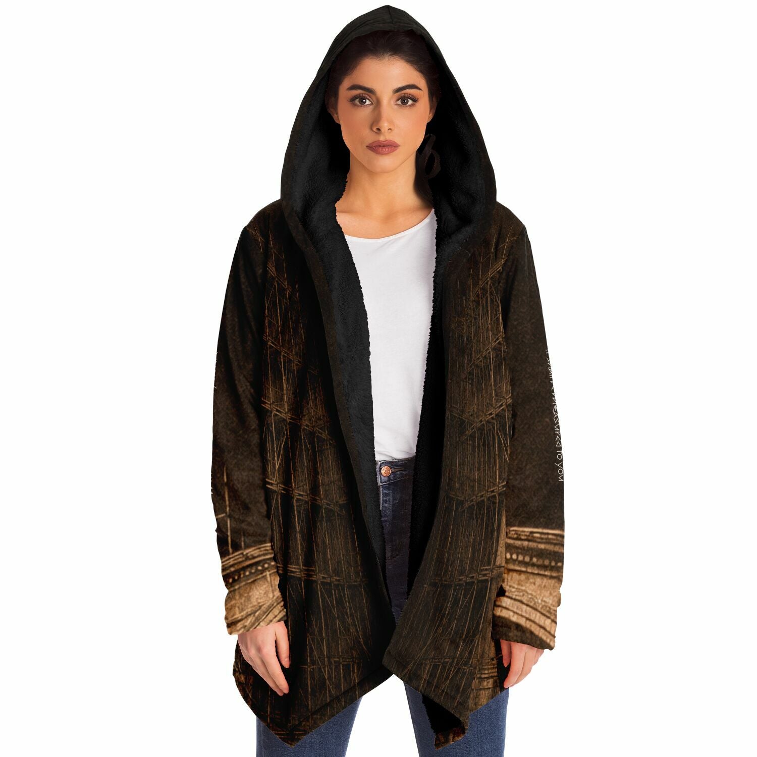 This luxurious cloak is made from an ultra-soft premium microfiber fleece lining. The outside is made with a micro-mink polyester fabric that allows the print to be high definition with vibrant colors. Featuring two deep side pockets to keep your belongings safe and your hands warm.